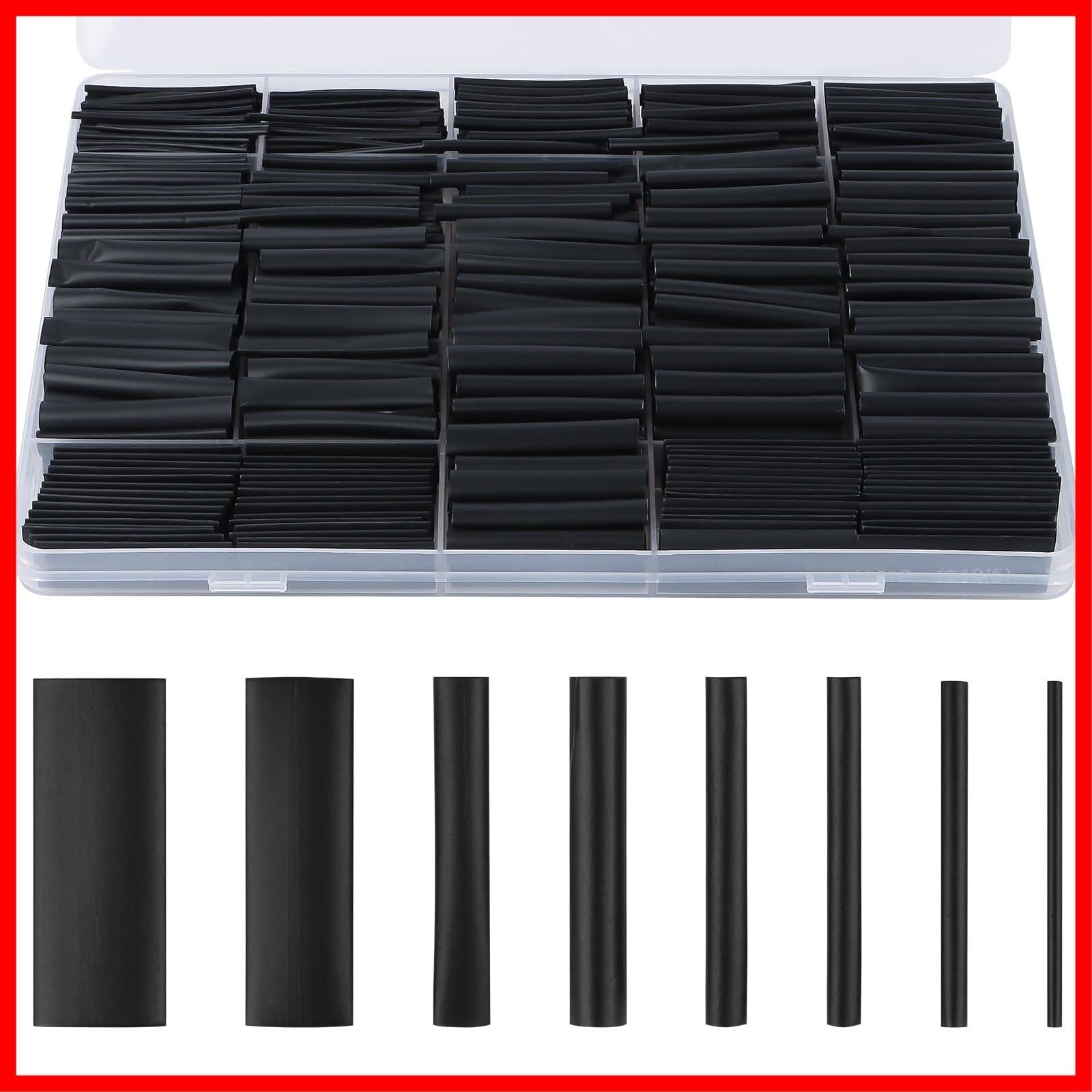 FINGOOO 熱収縮チューブ 650PCSセット・8サイズ 絶縁チューブ 伸縮チューブ ヒシチューブ 防水 高防水性 高絶縁性 高難燃性 収納ボックス付き (黒 650pcs) | hananoki