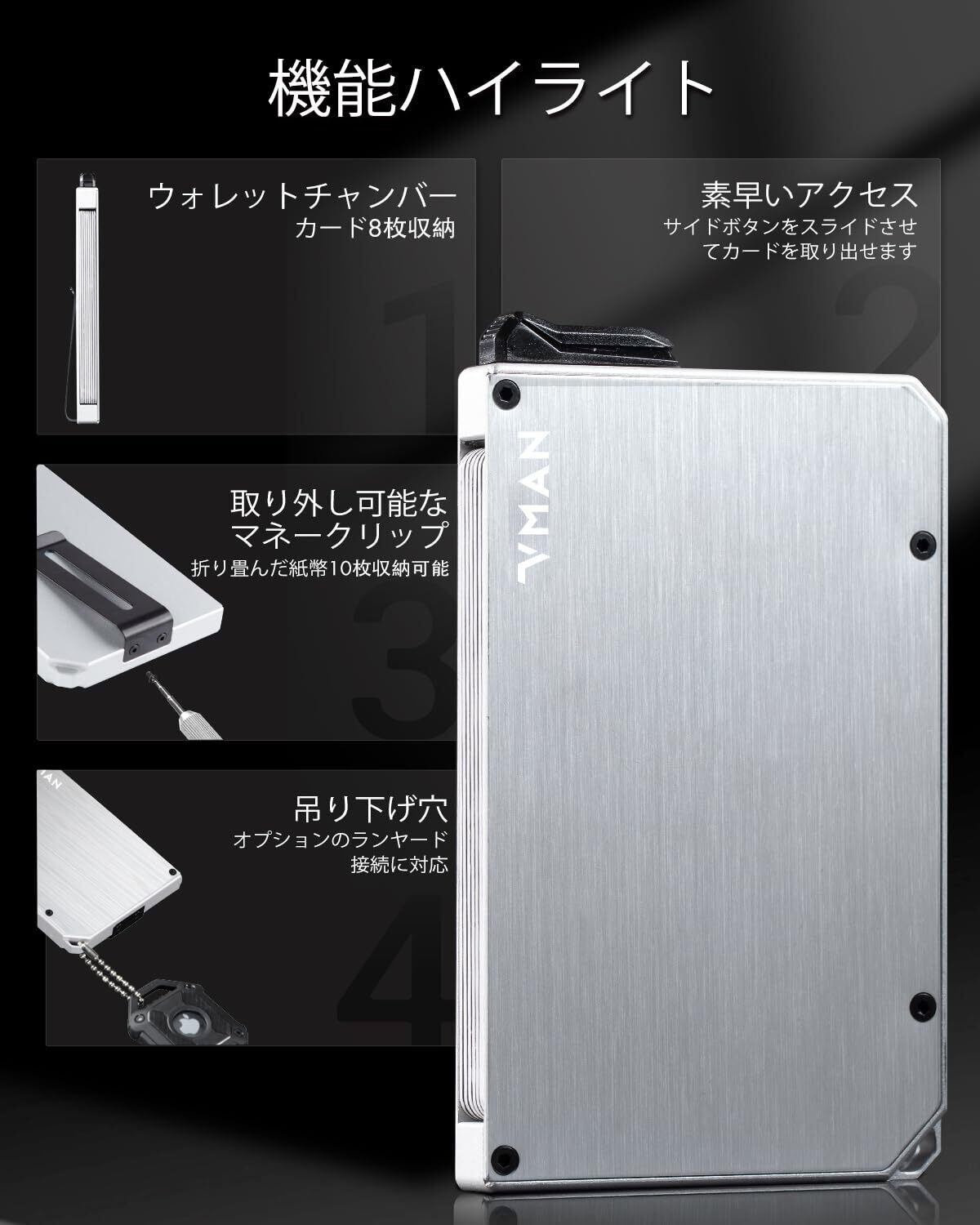 [VMAN] クレジットカードケース スキミング防止 マネークリップ メンズ 薄型 レディース 磁気防止 カードホルダー 収納ケース プレゼント用 (シルバー)