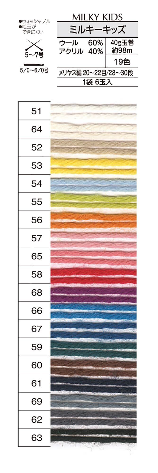 オリムパス 製絲 手編み 毛糸 合太 ミルキーキッズ COL. 55 約40g 98m 6玉セット