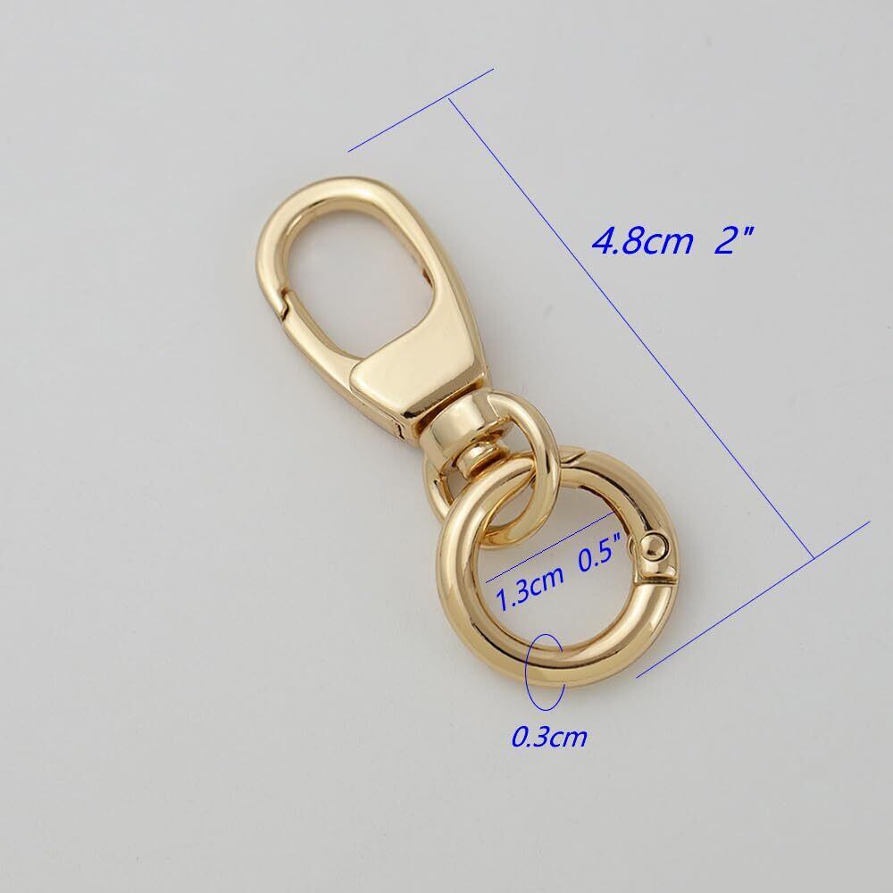 ナスカン 二重リング キーホルダー 回転フック スナップフック 手作り 手芸用品 ハンドメイド金具 レバーナスカン ワンタッチキーホルダー パーツ DIY用 アクセサリーナスカン (4.8cm, ゴールド)