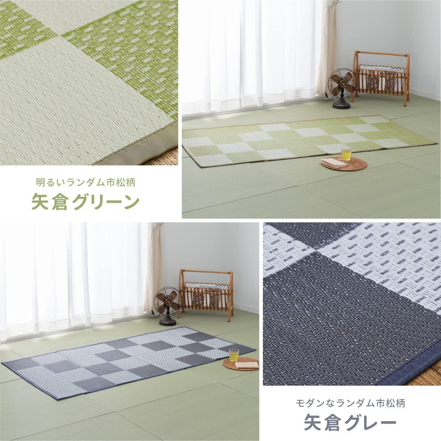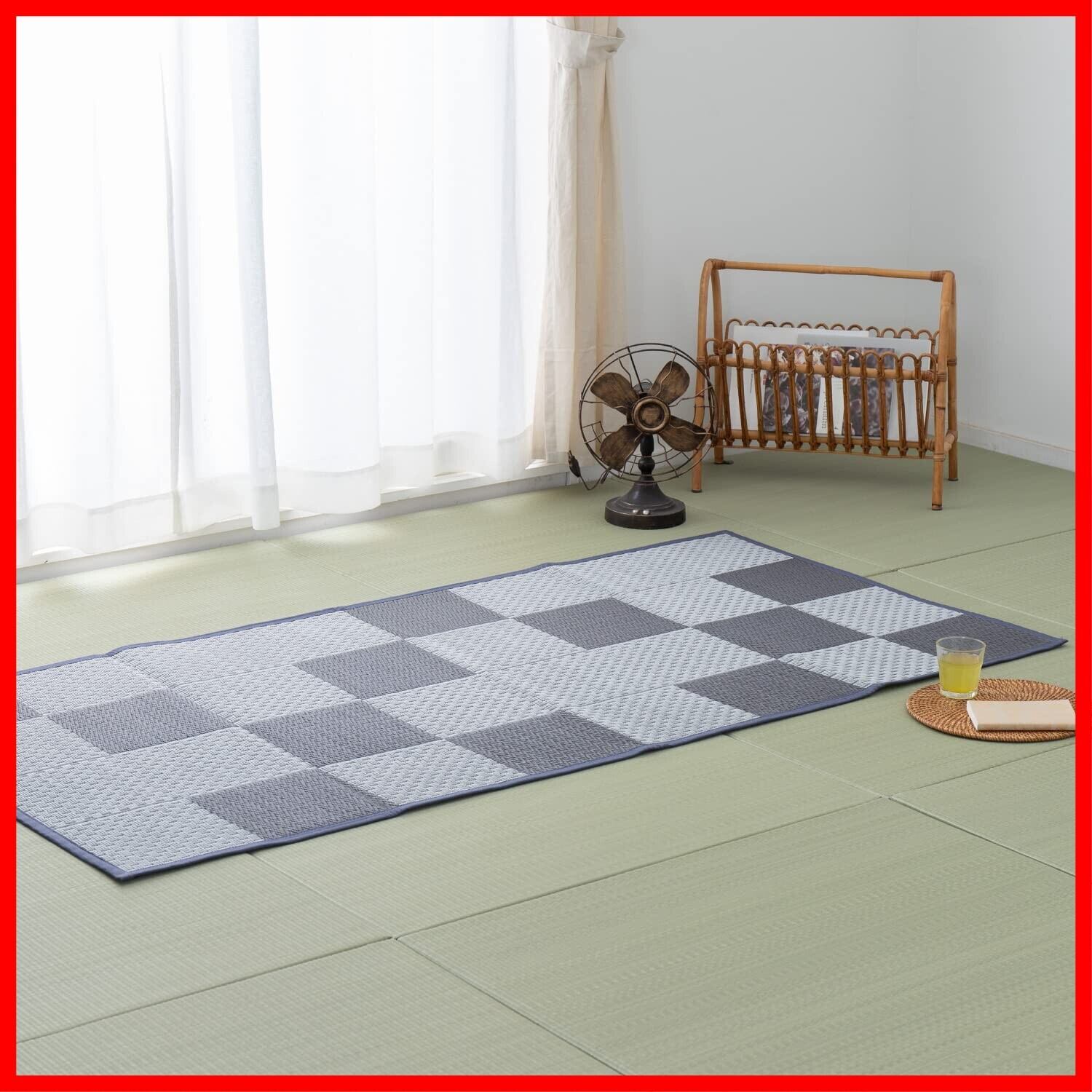萩原 洗える い草風カーペット グレー 江戸間1畳 約88X174cm 「矢倉」 ラグ 花ござ モダン 和風 市松柄
