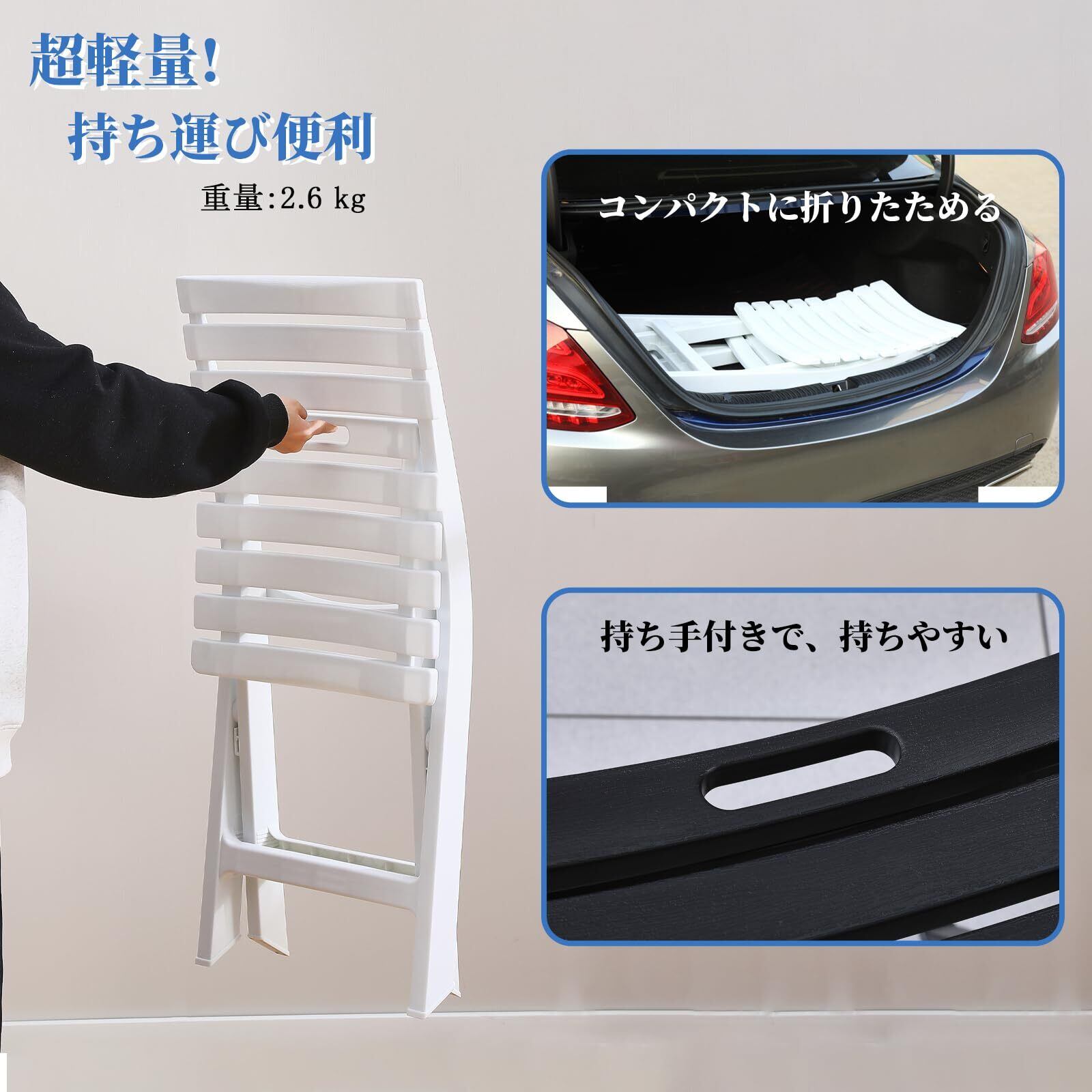 様々なシーンで大活躍!シンプルなデザインで、室内外問わず置くだけでおしゃれ空間に。玄関ポーチやベランダ等スペースはもちろん、セットで揃えれでお庭でのガーデンパーティ、公園でのピクニック、キャンプ、お釣りとバーベキューなどご使用いただけます。