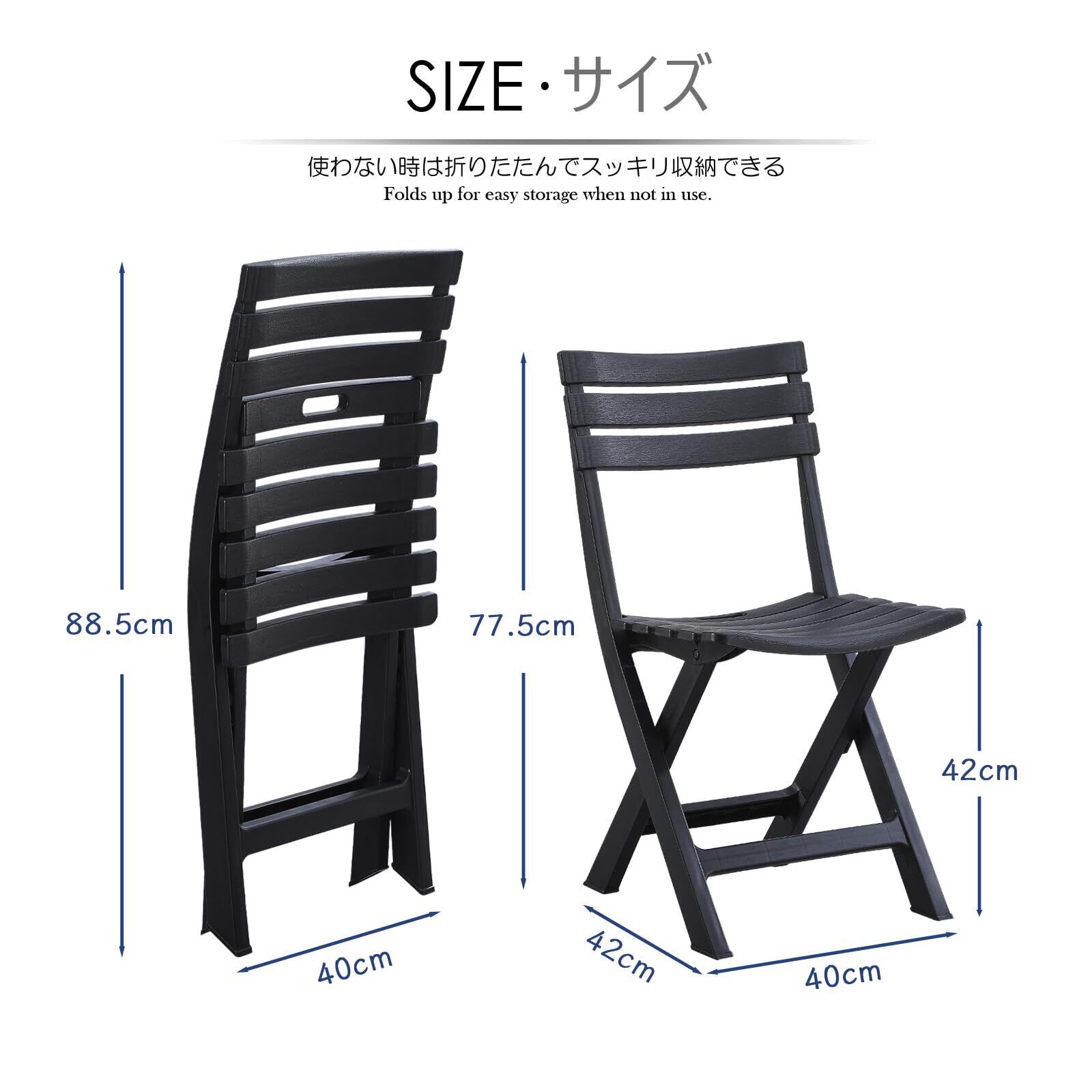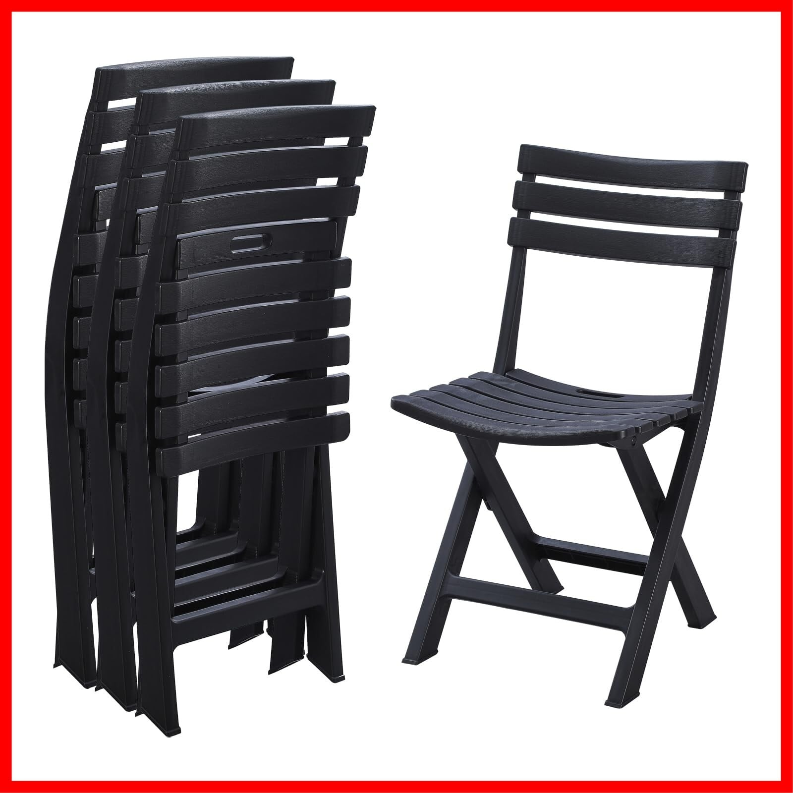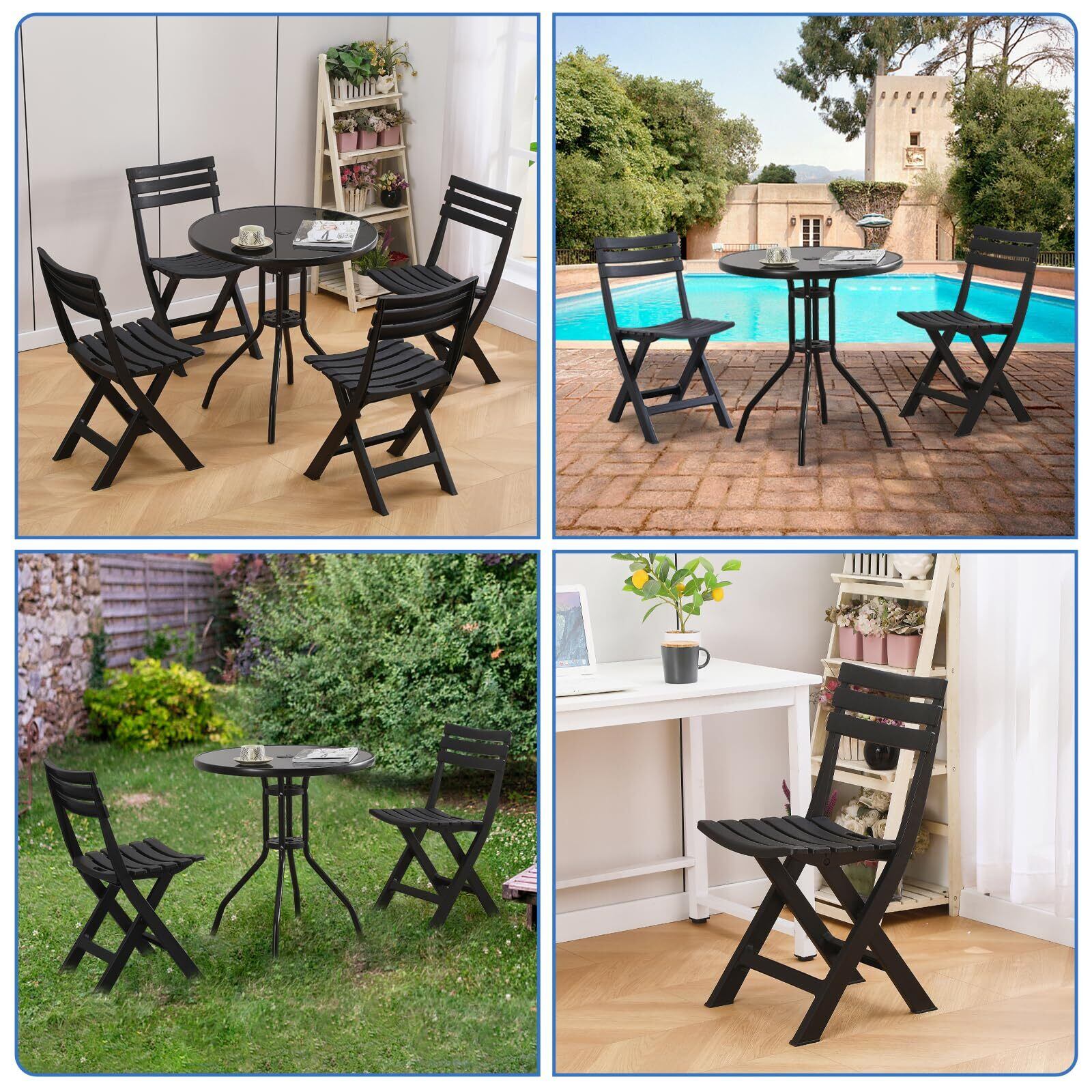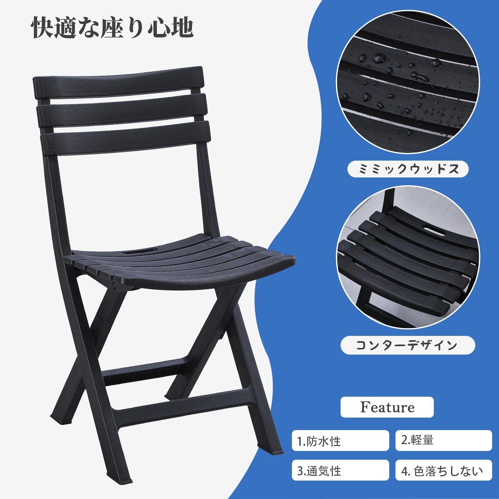 KAIHAOWIN ガーデンチェア 4脚セット 折りたたみ椅子 プラスチック アウトドアチェア 折り畳み椅子 背もたれあり 持ち運び 室外椅子 お庭・ベランダ・バルコニー用いす 携帯椅子 シンプル 軽量 キャンプ/お釣り/バーベキュー イベント椅子 -ブラック