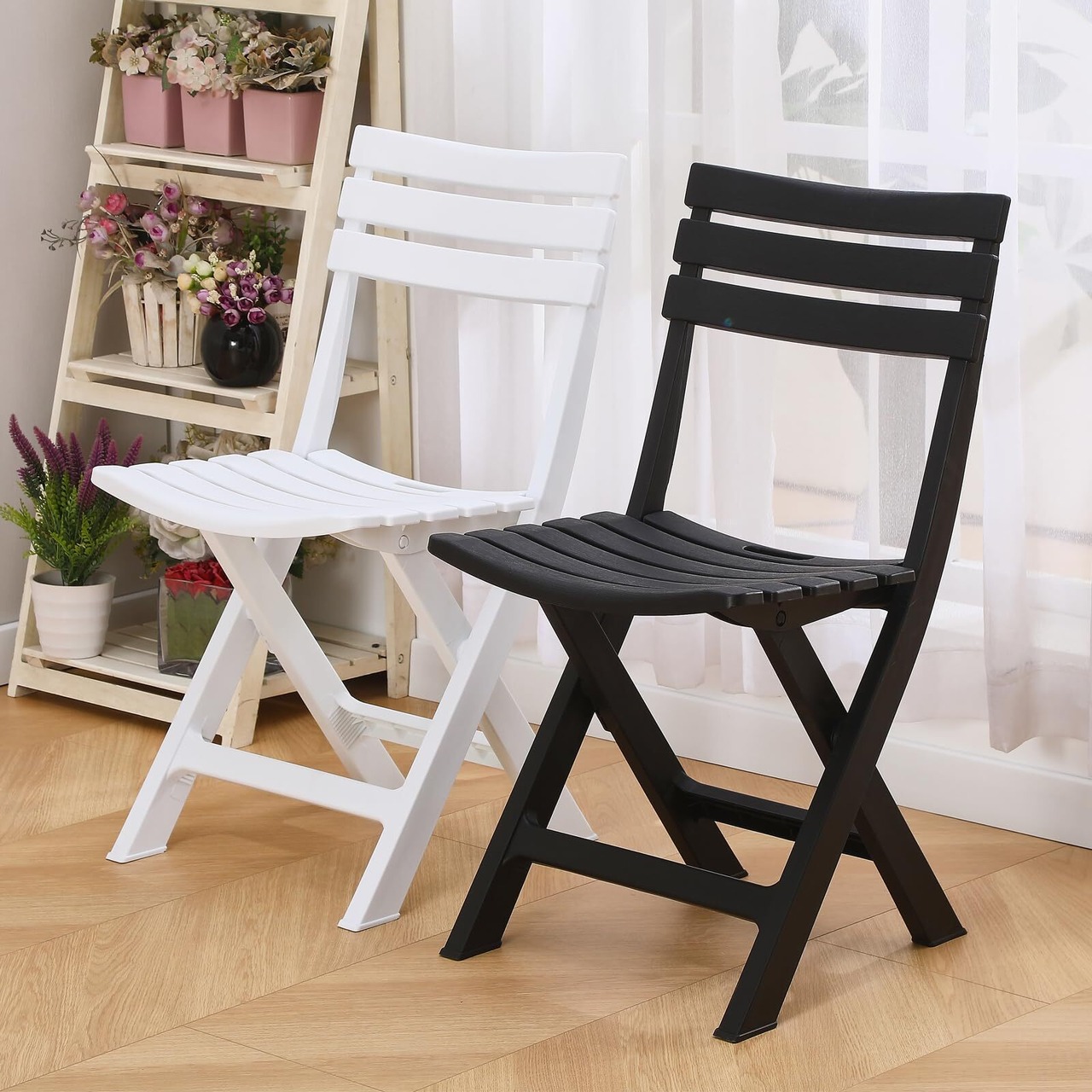KAIHAOWIN ガーデンチェア 4脚セット 折りたたみ椅子 プラスチック アウトドアチェア 折り畳み椅子 背もたれあり 持ち運び 室外椅子 お庭・ベランダ・バルコニー用いす 携帯椅子 シンプル 軽量 キャンプ/お釣り/バーベキュー イベント椅子 -ブラック | hananoki