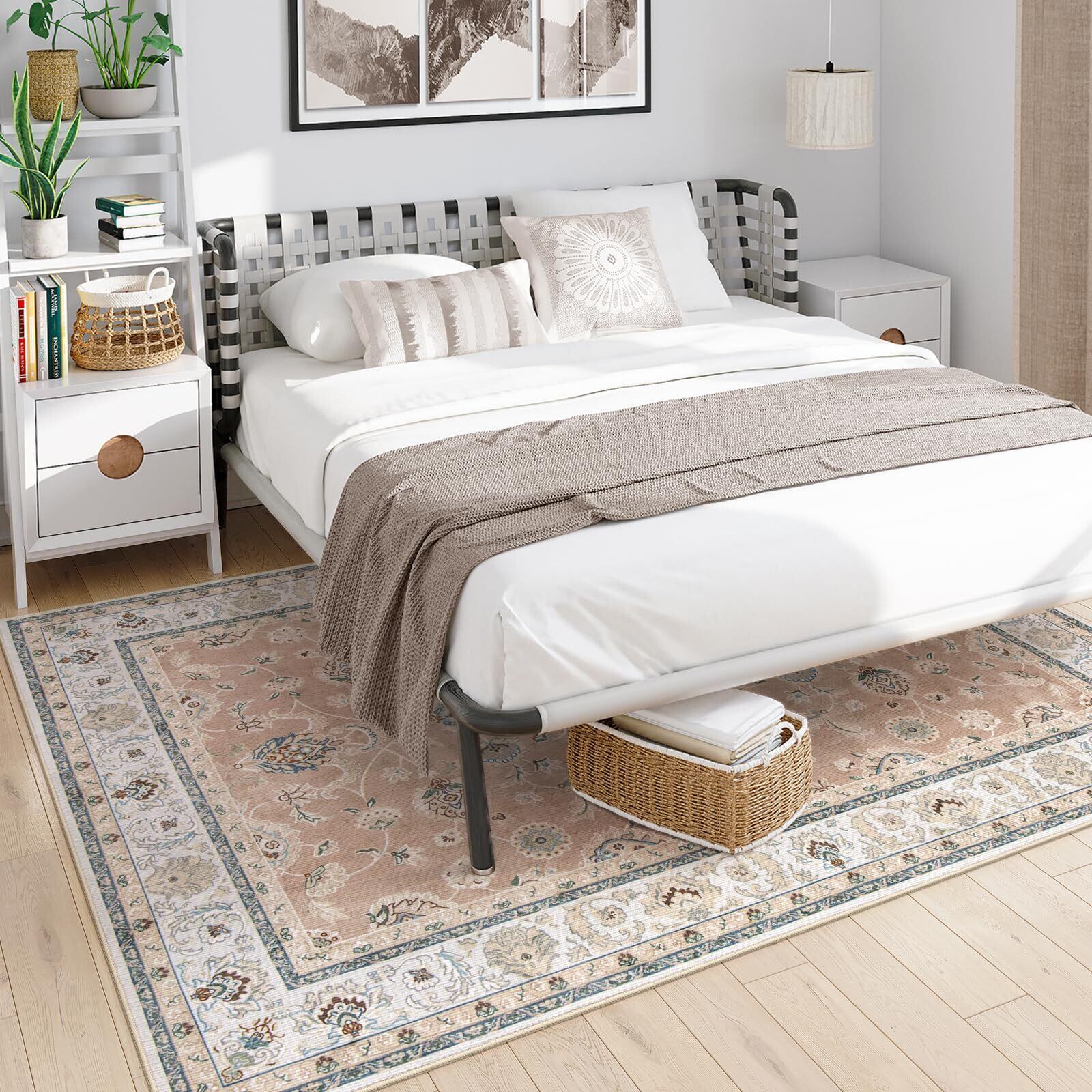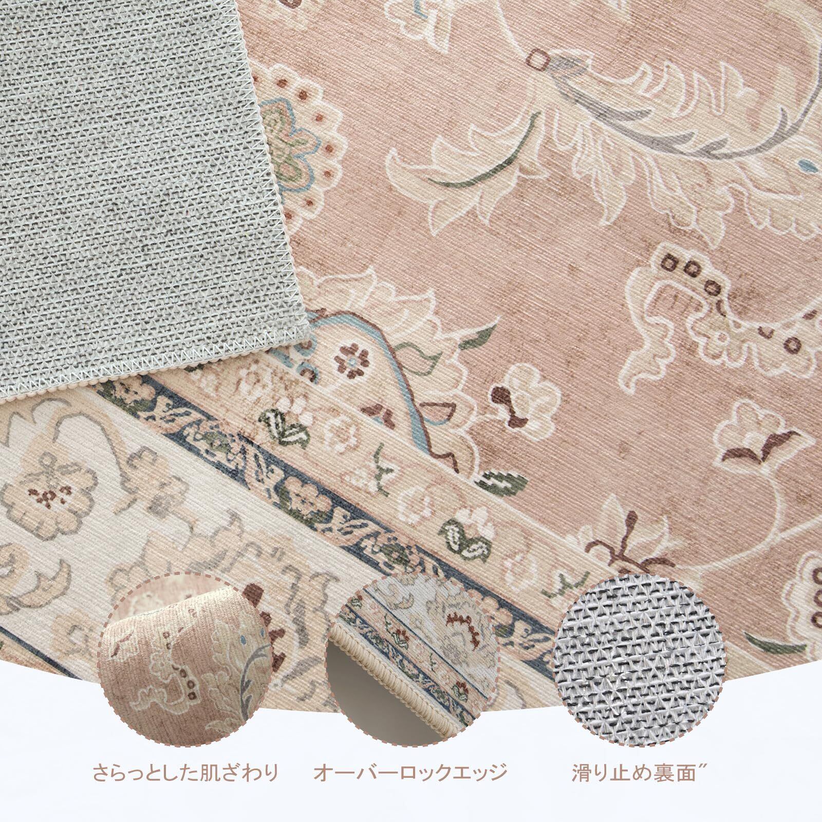 HAOCOO カーペット 1.5畳 洗える 140х200cm ラグ オールシーズン適用 ペルシャ風 じゅうたん 滑り止め ホットカーペット対応 防音 寝室 リビング ラグマット 抗菌防臭 耐磨耗性 花柄 コーラルピンク | hananoki