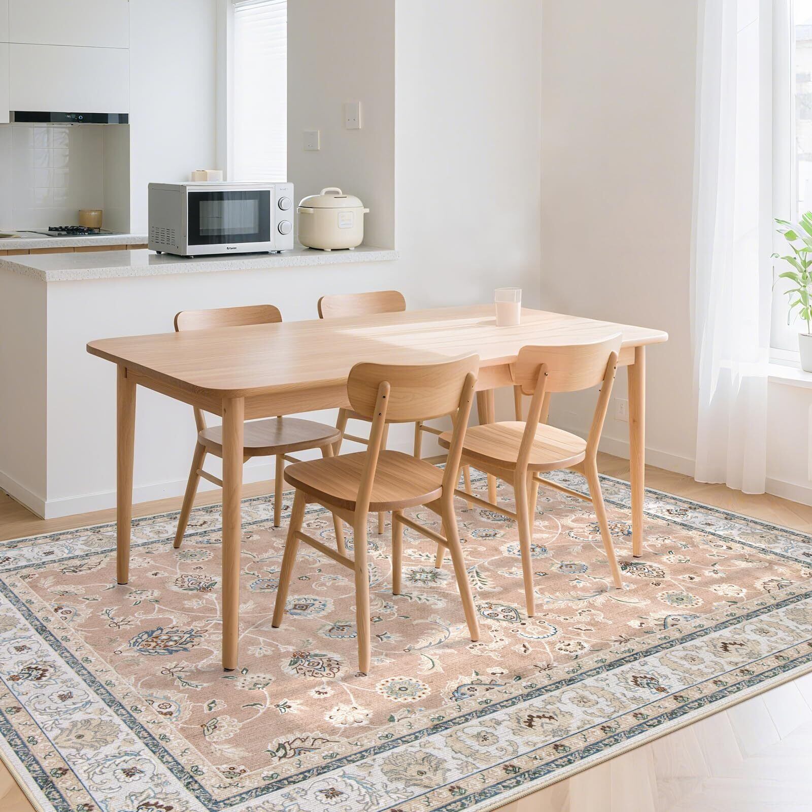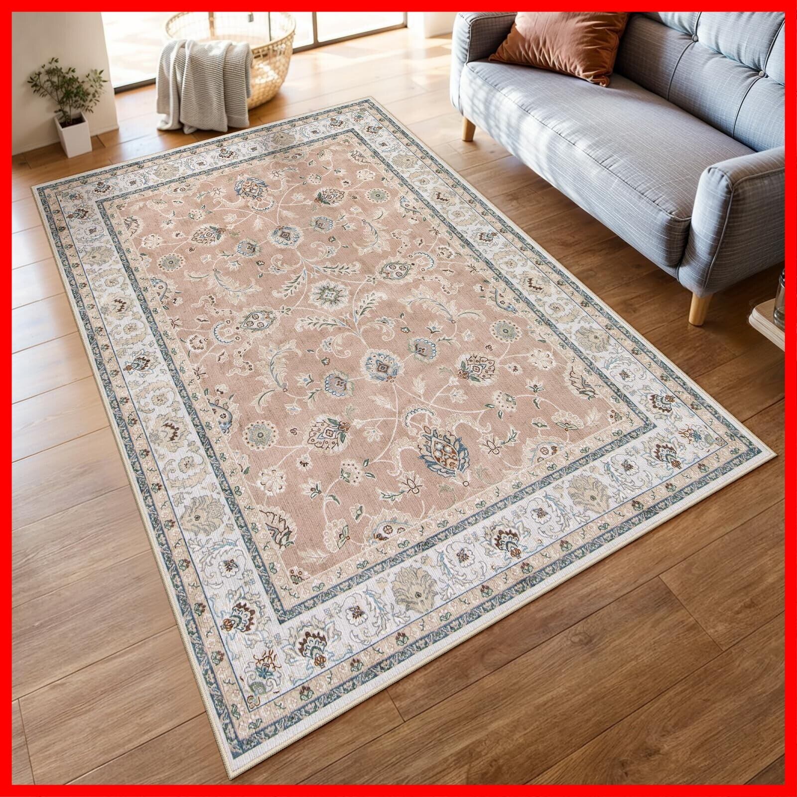 HAOCOO カーペット 1.5畳 洗える 140х200cm ラグ オールシーズン適用 ペルシャ風 じゅうたん 滑り止め ホットカーペット対応 防音 寝室 リビング ラグマット 抗菌防臭 耐磨耗性 花柄 コーラルピンク