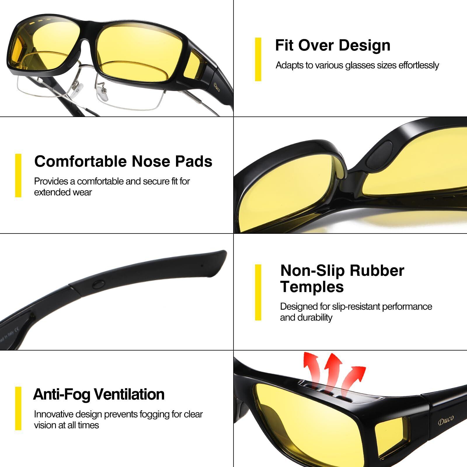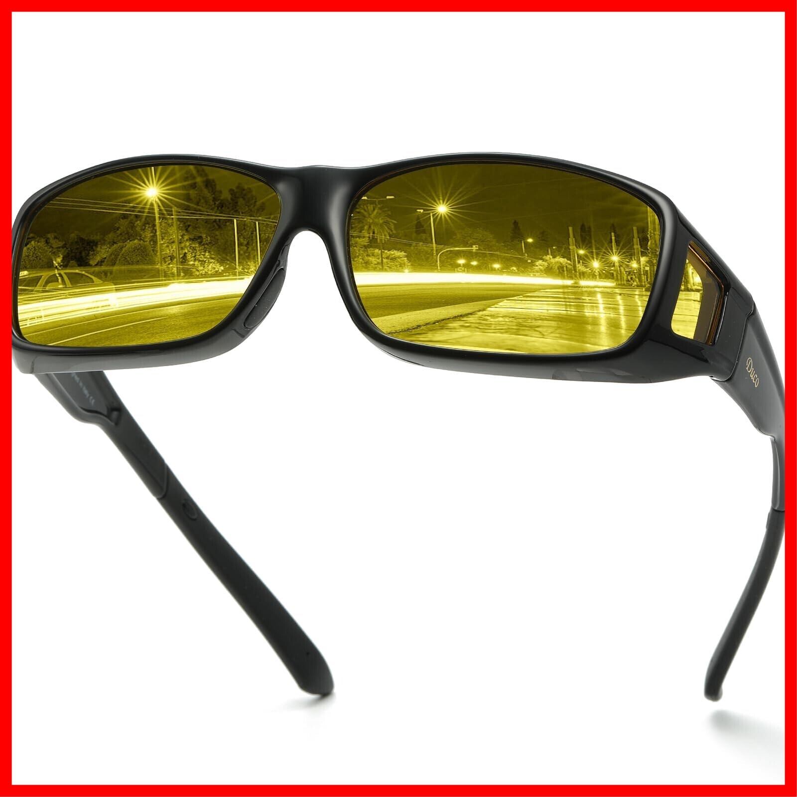 [DUCO] メガネ サングラス オーバーサングラス 夜間 運転用 ドライブ用 メガネの上から掛けられる さんぐらす イエロー 偏光レンズ UV400 紫外線カット 夜用サングラス 8953Y | hananoki