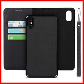 Pelanty for iPhone XS Max ケース手帳型 for iPhoneXSMax 背面カバー 分離式両用2way 取り外し自由 内蔵マグネット 携帯カバー 縄掛け 合成PUレザー+TPU 財布型カード収納 横開きスタンド機能 ストラップ付き スマホケース アイフォンXS Max 耐衝撃 (2in1-ブラック)