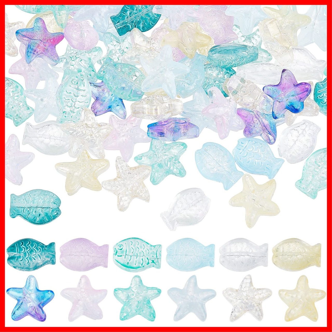 SUNNYCLUE 120個10種 魚 ビーズ ガラス ビーズ 海星 ビーズ 魚 チャーム ガラスビーズ 動物 ビーズ 海洋 スペーサー ビーズ ミニ 海の生き物 ビーズ 海洋生の物 ヒトデ ペンダント 動物 カボション マカロン色 カラフル ビーズ 半透明 白い ビーズバーツ ピアス イヤリング ポリマークレイ ガラス 穴付き キーホルダー ブレスレット チョーカー チャームパーツ アクセサリーパーツ 基礎パーツ ジュエリー作り レディース デコキット デコ素材 クラフト手芸 手作り ハンドメイド キッ | hananoki