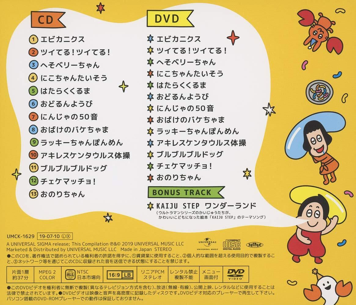 子ども達がみんな大好きなYouTube再生回数5,000万回超えの「エビカニクス」を始め、有名楽曲をCD&DVDで多数収録!