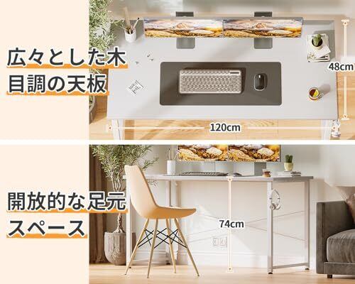 【商品仕様】シンプルでインテリアに馴染むおしゃれなデスクです。◆本体サイズ:幅120×奥行48×高さ74CM | 本体重量:9.3KG | 日本語組立説明書あり | お客様組立て品で、レンチも付属しており、別途で工具を買う必要がないです。