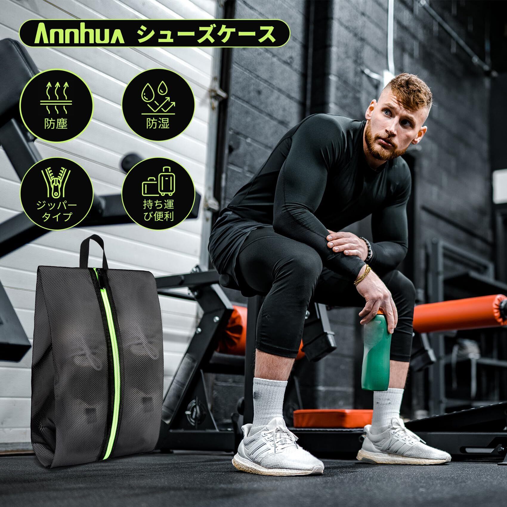 Annhua シューズケース シューズバッグ 防水 防塵 シューズ袋 シューズ入れ 軽量 靴袋 アウトドア スポーツ スニーカーバッグ バスケシューズケース 持ち運び便利 学校 上履き入れ 出張 旅行用 シューズ収納 ブラック