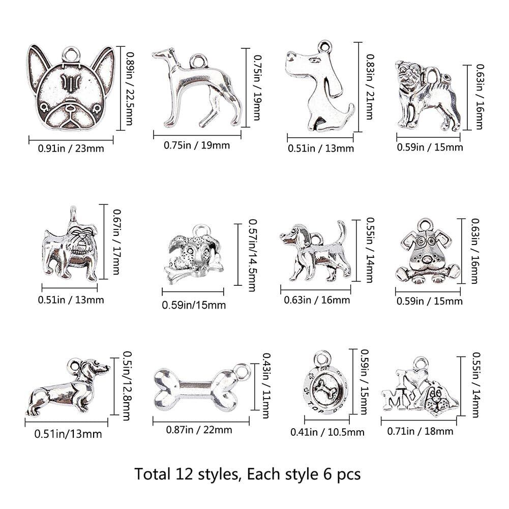 SUNNYCLUE 72個12種 チャーム 骨 犬 合金 チャーム ハート ペット パーツ 足跡 動物 ネックレス チャーム 透かし チャーム メタルビーズ チベット風 ヴィンテージ 銀古美 ジュエリー作り ネックレス ブレスレット デコキット チャームパーツ レディース クラフト手芸 手作りキット DIY飾り物