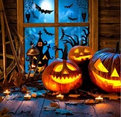 柄:コウモリ、蜘蛛、蜘蛛の網、お城、黒い木。