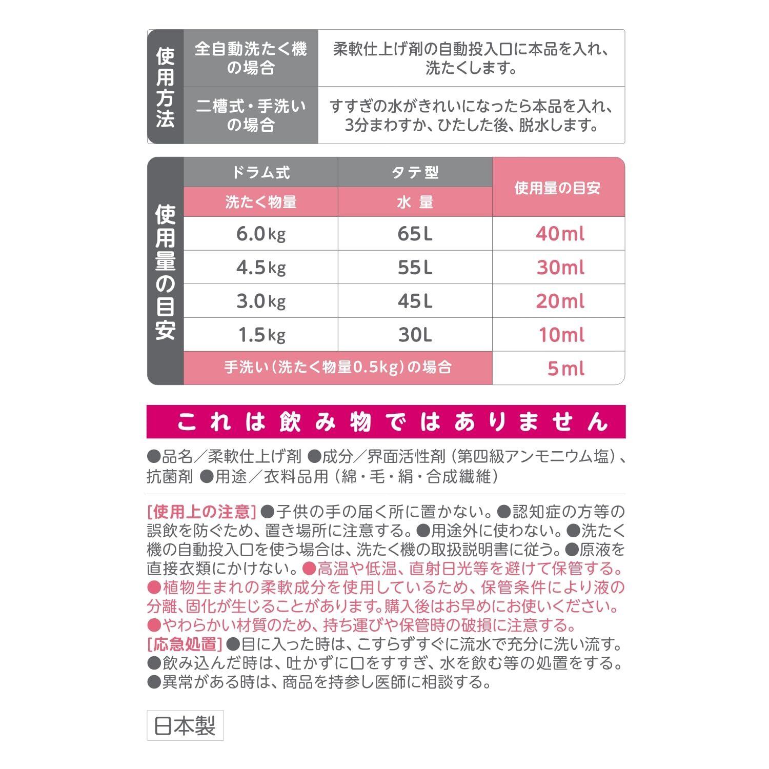 ●高温や低温、直射日光等を避けて保管する。 ●植物生まれの柔軟成分を使用しているため、保管条件により液の分離、固化が生じることがあります。購入後はお早めにお使いください。