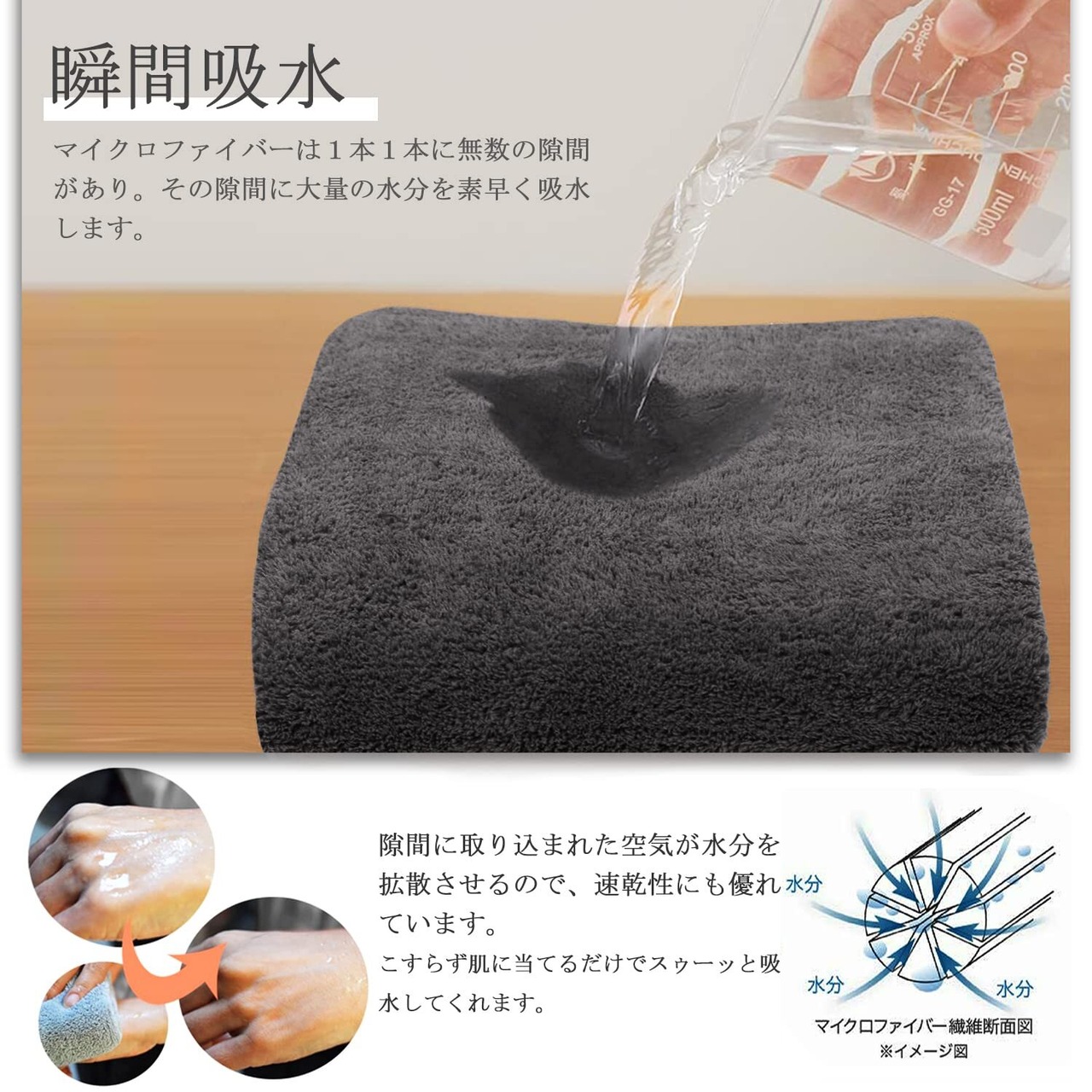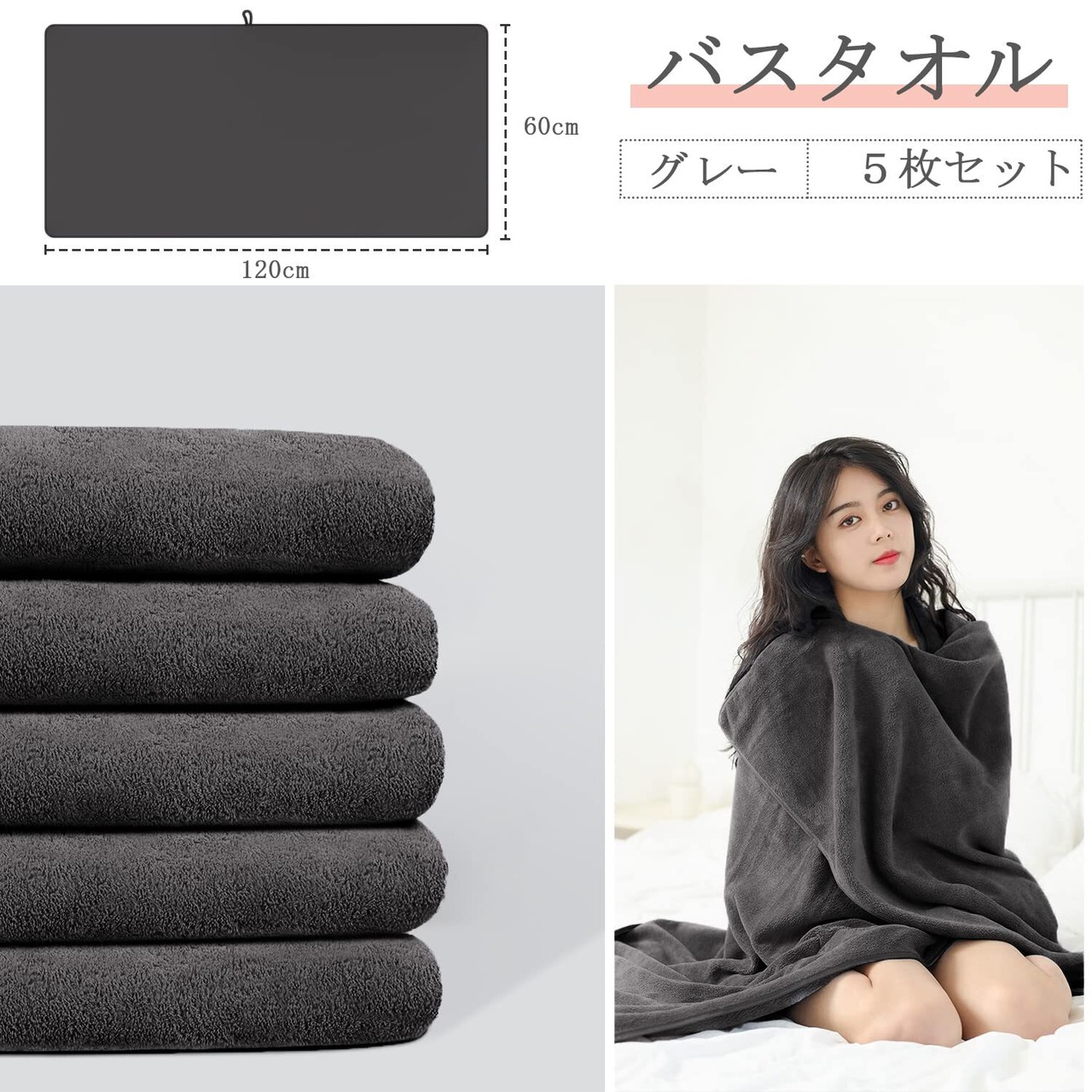 【バスタオル 5枚セット】素材:マイクロファイバー サイズ:約60x120cm/枚 セット内容:バスタオル 5枚セット カラー:ダークグレー