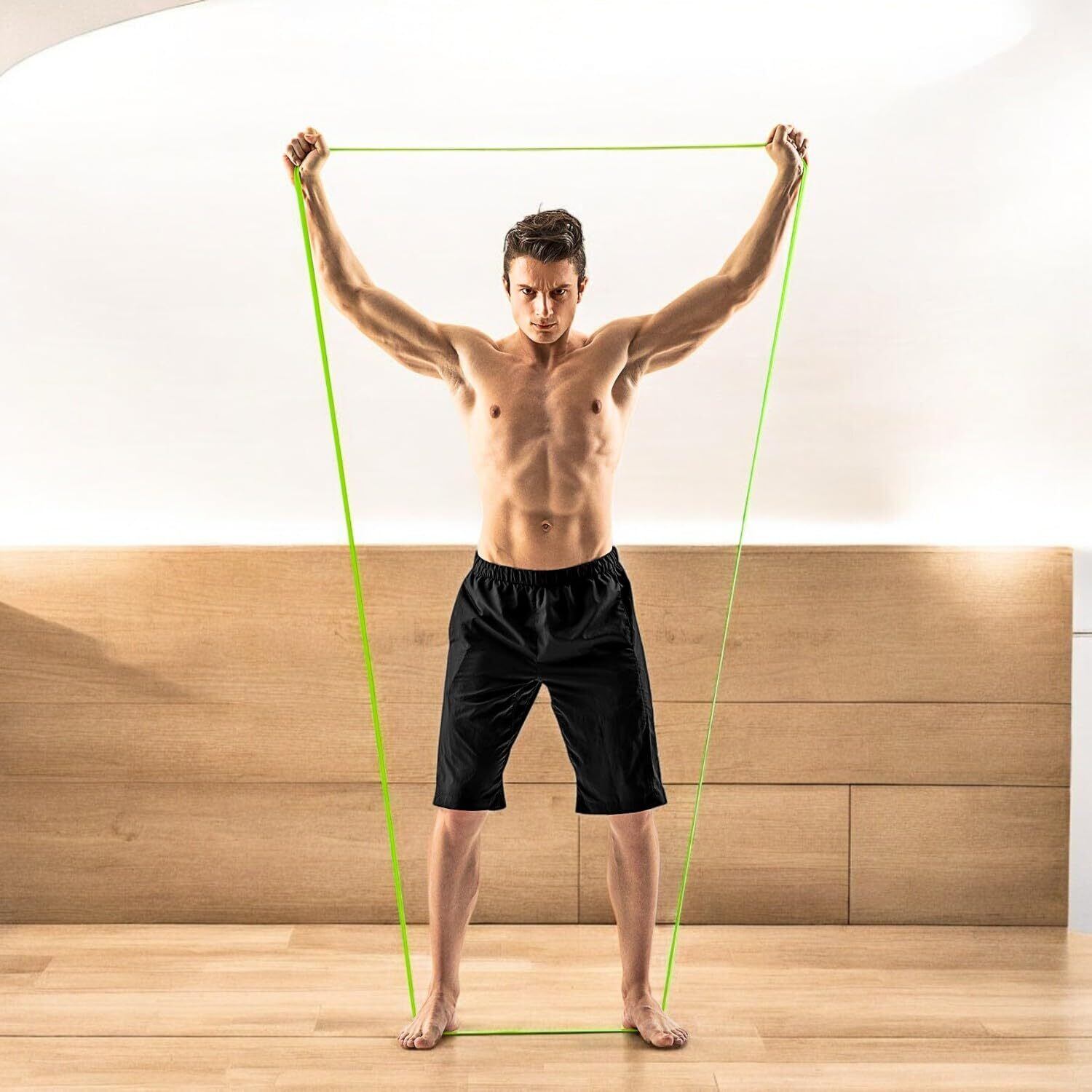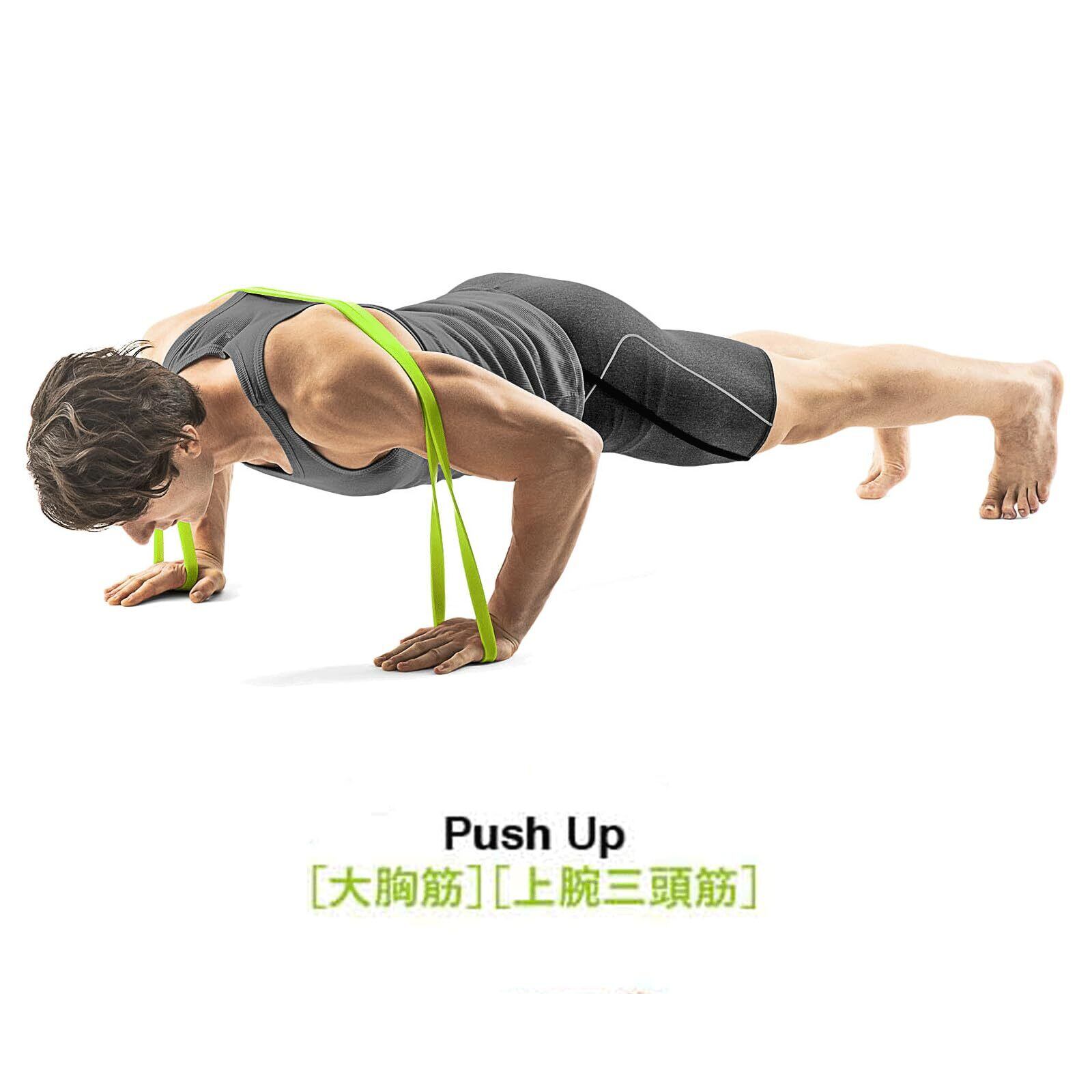腕、胸、足、肩など、身体の様々な部分を効率よく鍛えるのに最適なゴムバンドです。自分に合った強度で自由にトレーニング。