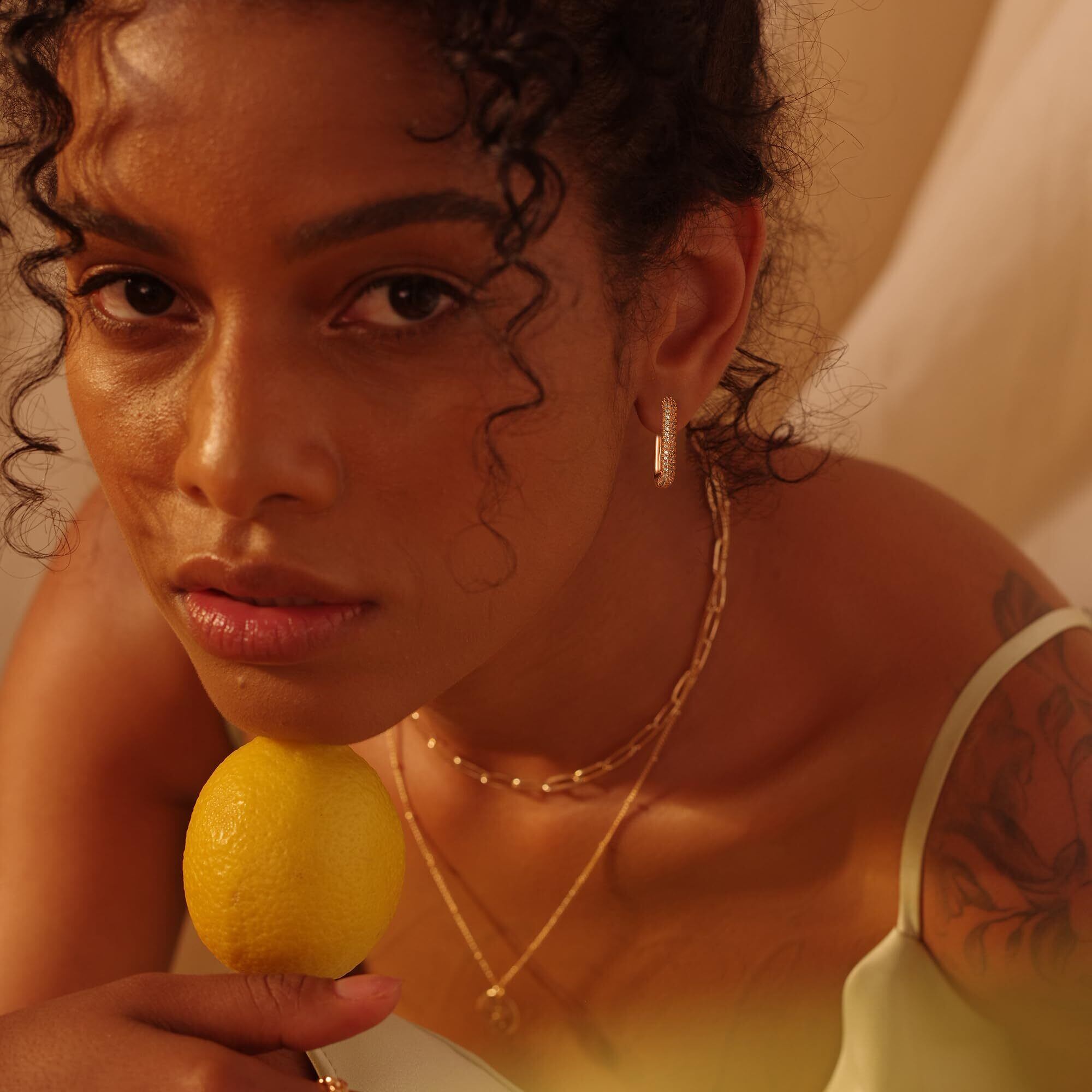 【装着が簡単でつけ心地が魅力】両耳セットイヤリング、装着の際にはピンの部分を内側に軽く押しながらカチッとはめ込んで下さい。キャッチレスフープピアス、さらに耳たぶをはさむ部分の接地面をしっかりとっているため、長時間着けていても痛くなりにくいのが特徴です。