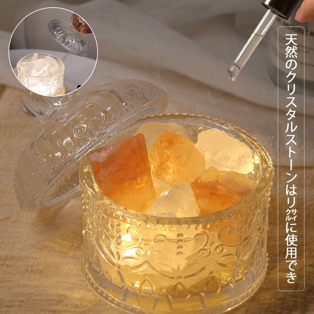 HIGHAWKアロマランプ ベッドサイド クリスタル ガラス瓶 睡眠ライト 雰囲気 蓋付き USB アロマ用 空気浄化 ランプ台座 三色ライト(ホワイト+シトリン)