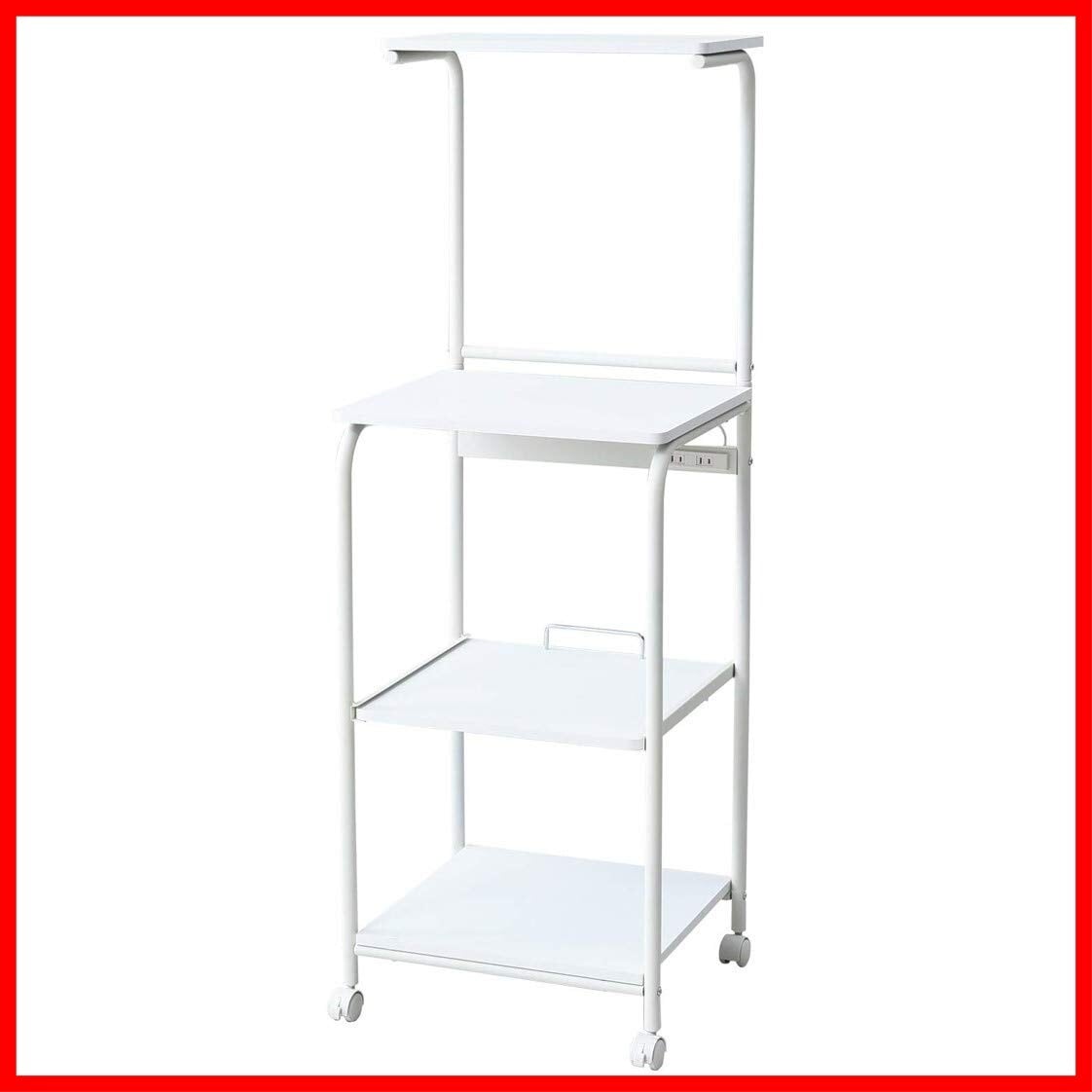 山善(YAMAZEN) レンジラック 幅48×奥行41×高さ141cm スライド棚 2口コンセント ストッパー付きキャスター レンジ台 ラック トースターラック 組立品 サンドホワイト/マットホワイト GRW-48R(WH) | hananoki