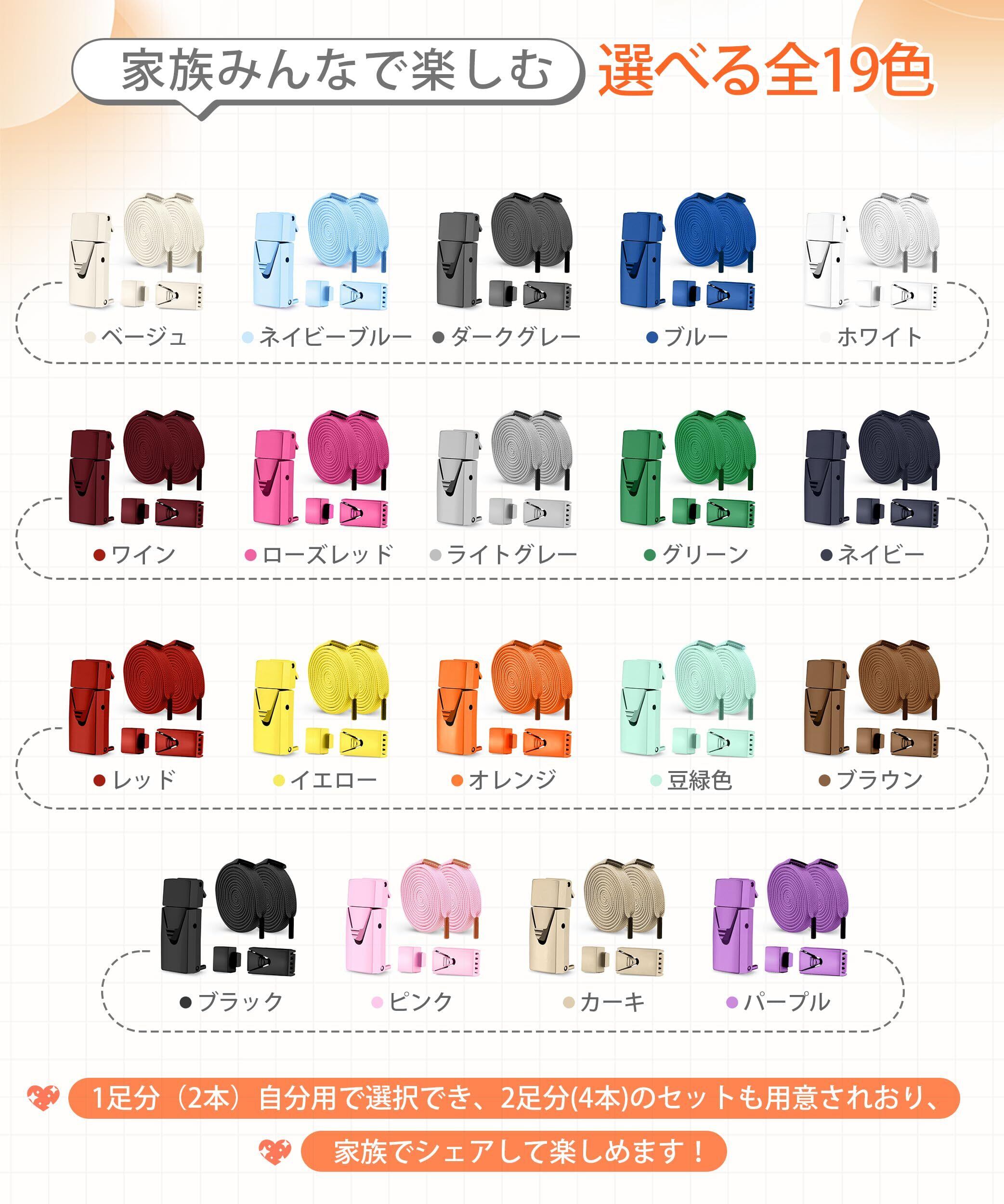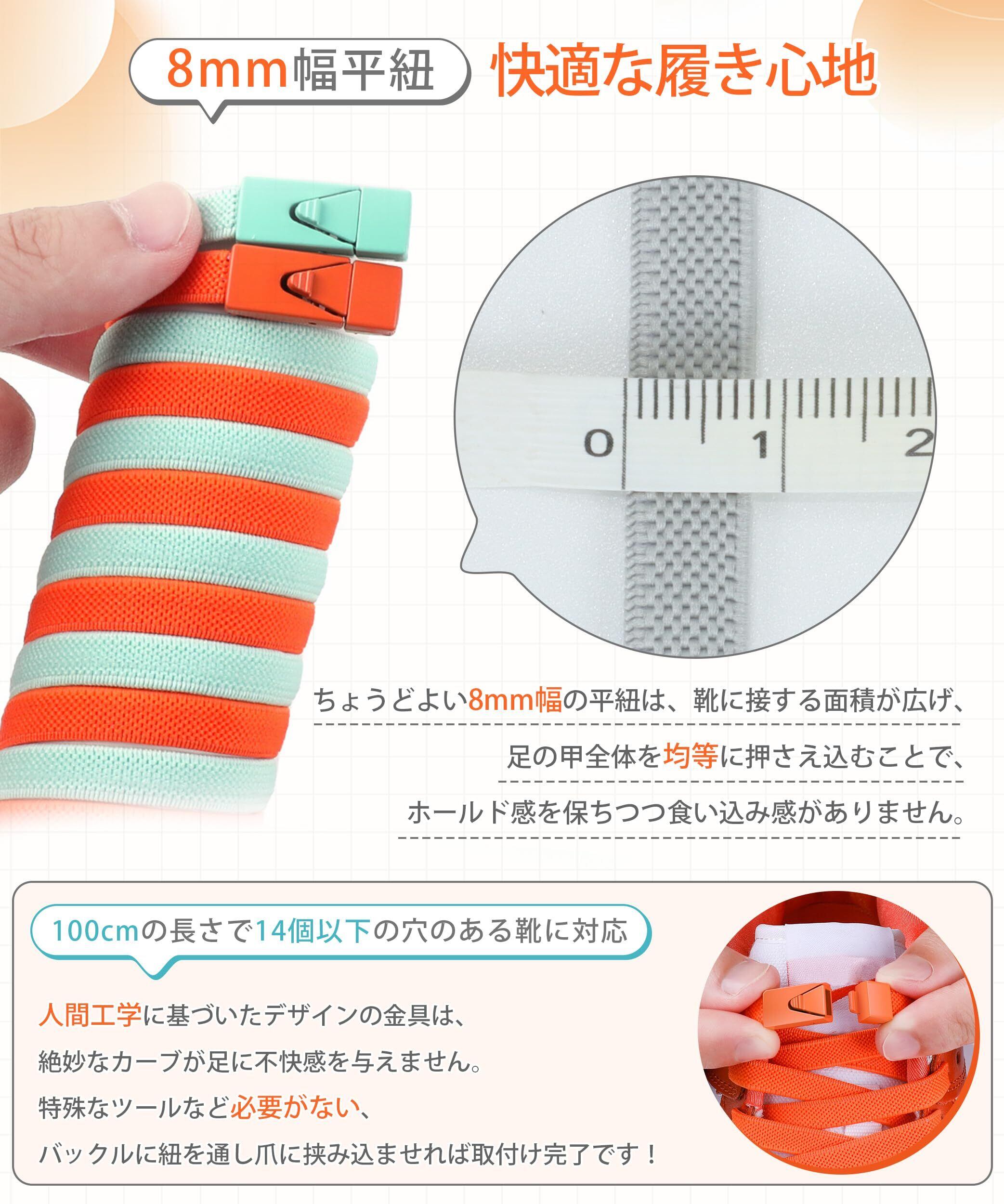 [MECOLO] 靴紐 結ばない シューレース 靴ひも 【2025強化版·結ばず&解けず·ワンプッシュで開閉】 ほどけない くつひも 簡単取り付け 平紐 留め具 ゴム紐 伸びる靴紐 8mm スニーカー 紐 子供 高齢者 無地 19色 1足/2足組 | hananoki