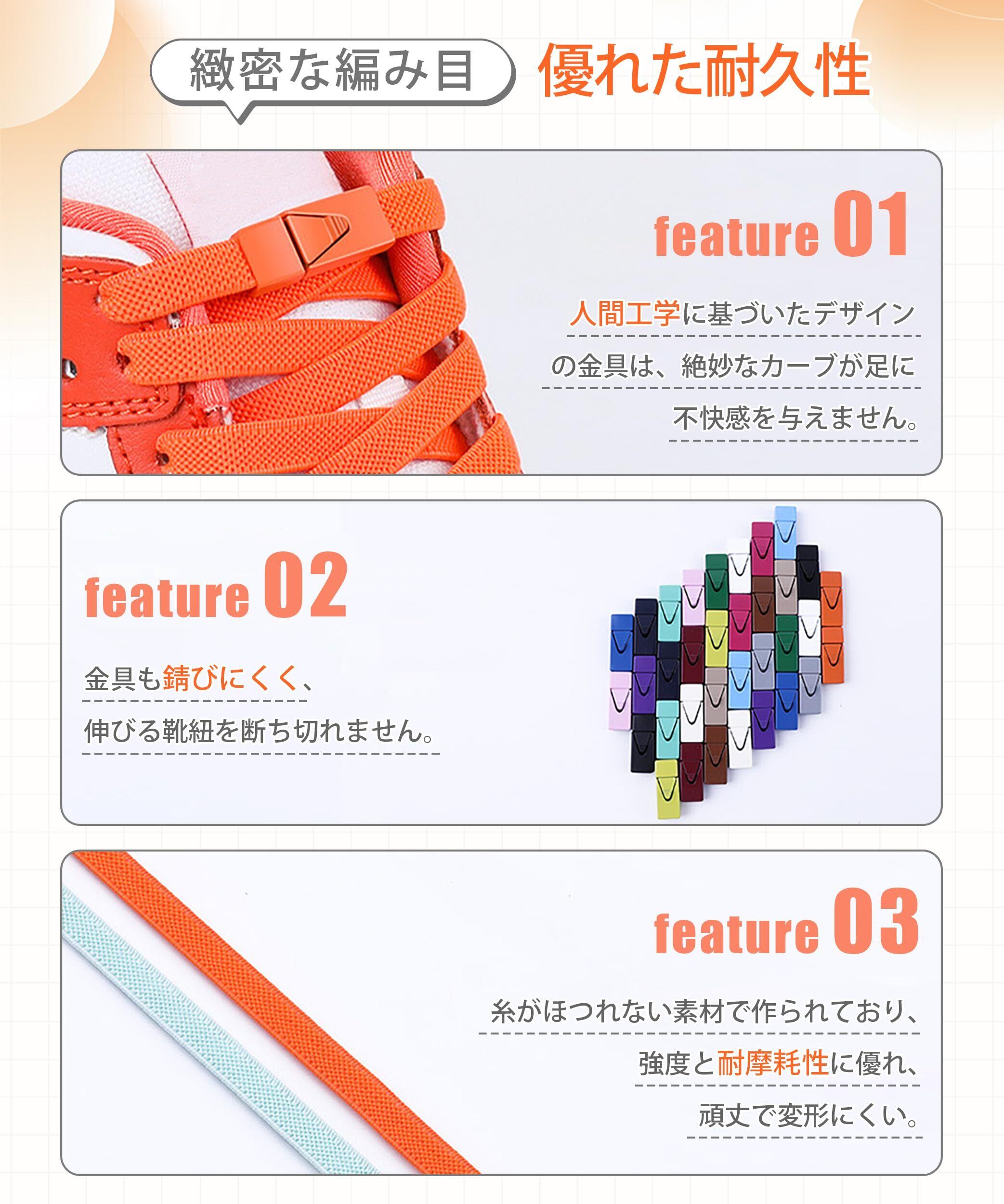 【結ばず&解けず·ワンプッシュで開閉】MECOLOの結ばない靴紐は、ボタンを押すだけでバックルをカチッとはめるだけなので、使い方も一目でわかります。一度締めると、靴ひもを結ぶ手間に振り回されることはありません!伸びるゴム素材ので、スニーカーを履くときはシューズの口を広げて履くだけ!脱ぐときもかかとを固定し、スリッポンのように簡単に脱げます。「脱ぎ」「履き」時間が一気に短縮!1秒でササッと履けて、振ってもほどけない結ばない靴紐です。改良された押しボタン式バックルなら、誰でも簡単にワンプッシュで開閉できます。朝の忙しい時間や急いでいるときにも、わざわざ靴紐を結ぶ手間が省けます。特に手が不自由な方やお年寄り、子どもや妊娠中などの人様々な方にオススメです。「ほどけて煩わしい」「結ぶのが苦手」「脱ぎ履きが面倒」といった悩みを、この結ばない靴紐1本で解決!