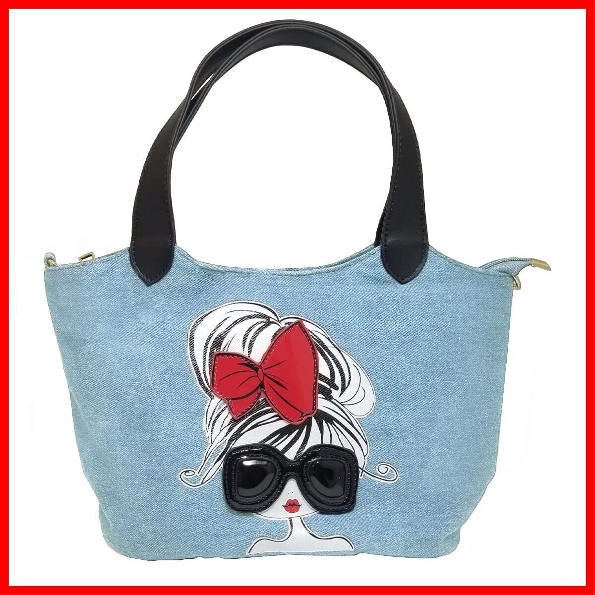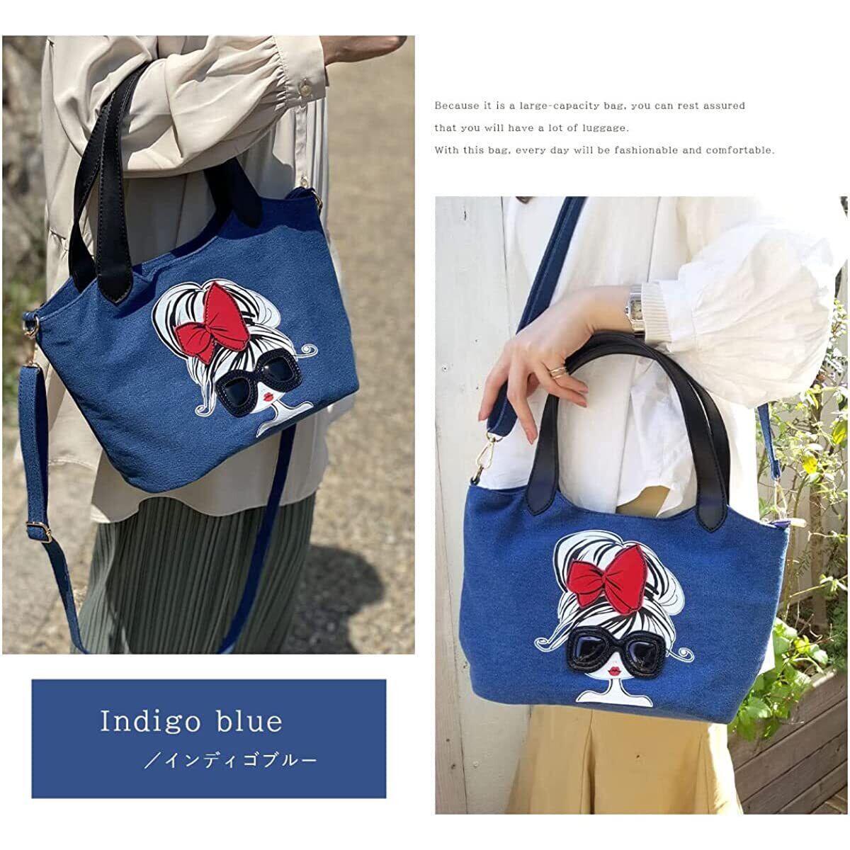[DIVA Rose] トートバッグ ショルダーバッグ 2way レディース 大容量 デニム バッグ 斜め掛け サングラスガール