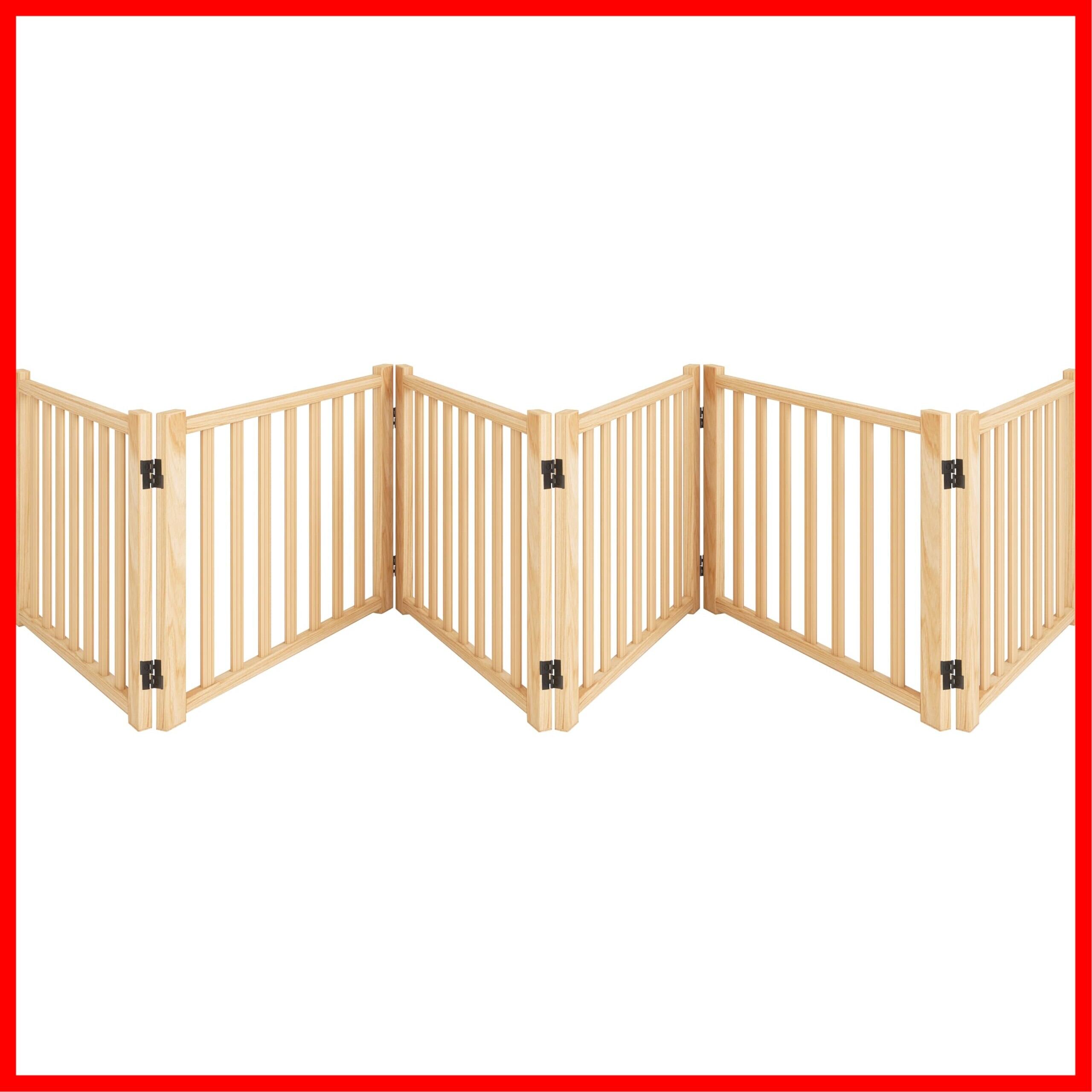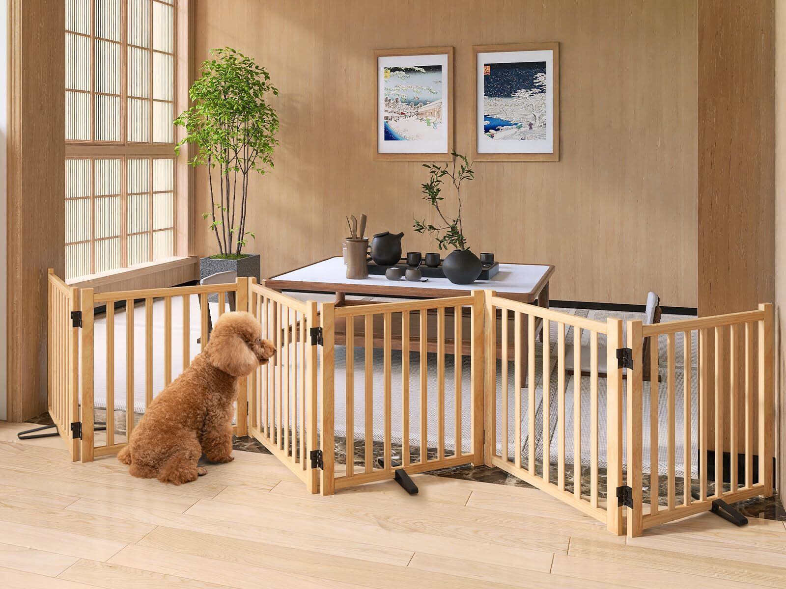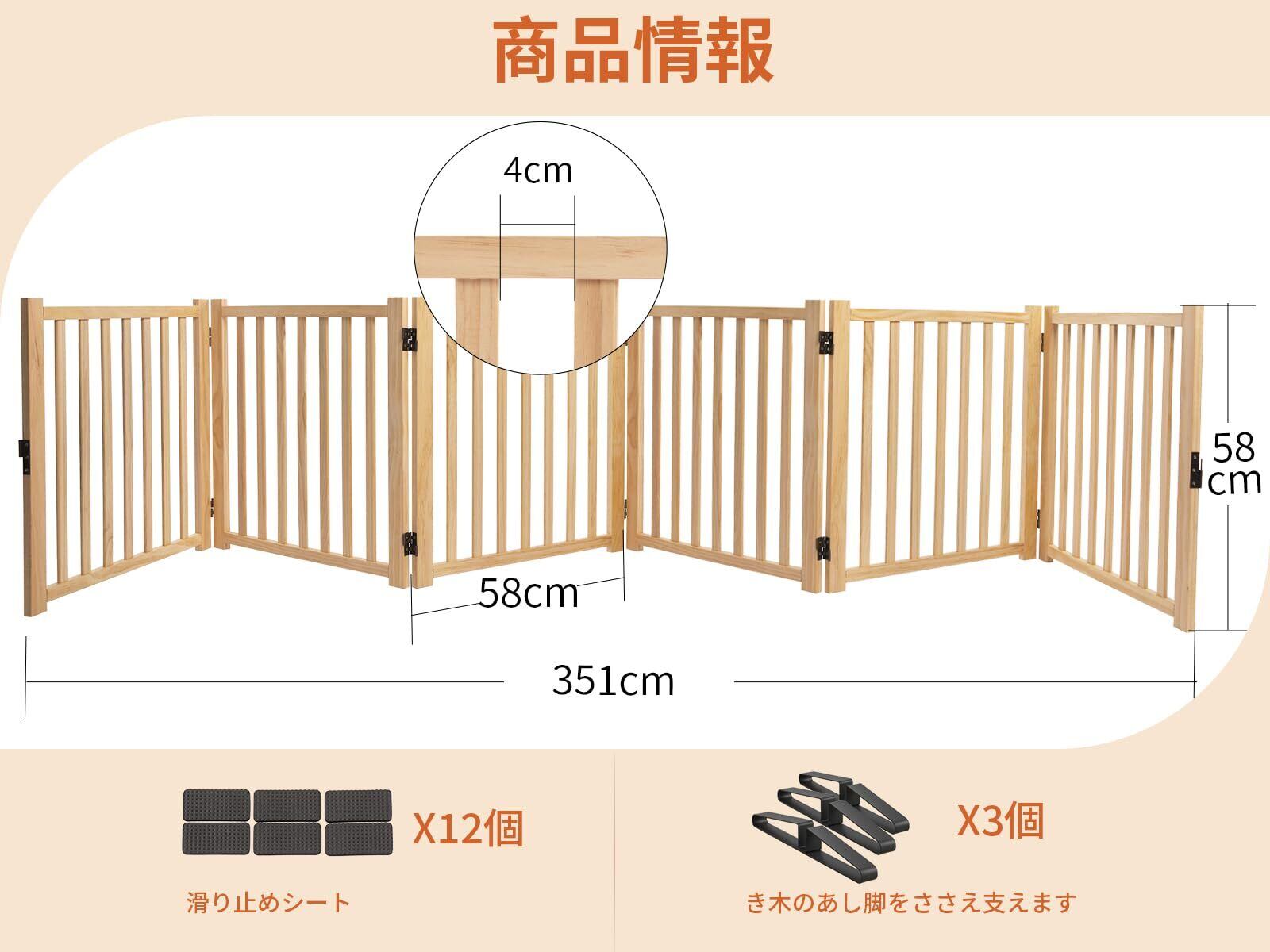 犬用ゲート木製 ペットゲート ペットフェンス 犬用フェンス、折り式バリア、ペット用家具フェンス 、安全柵 小型犬 中型犬 脱走防止 ガード 飛び出し防止 多頭飼い ペットガード(高さ58cm、長さ351cm、6つのパネル)