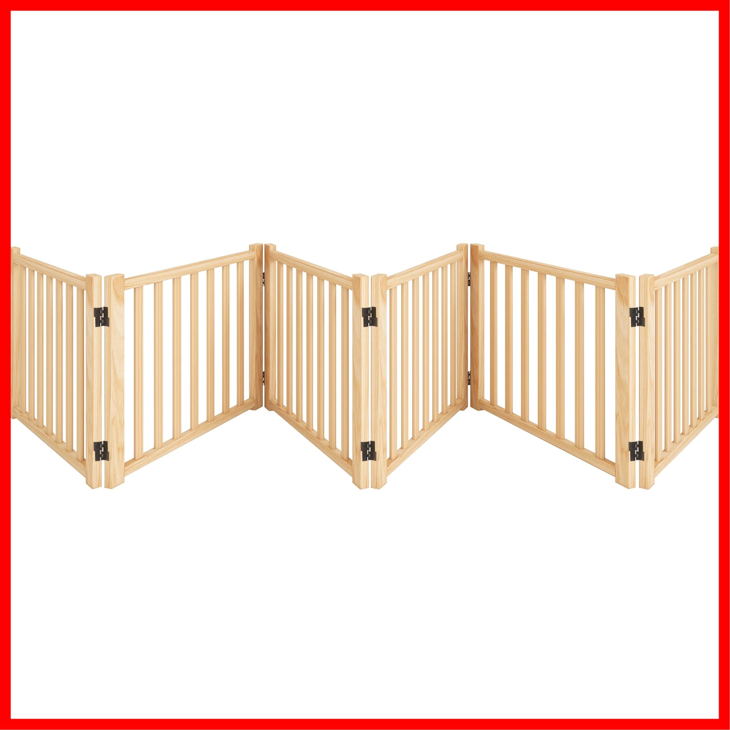 犬用ゲート木製 ペットゲート ペットフェンス 犬用フェンス、折り式バリア、ペット用家具フェンス 、安全柵 小型犬 中型犬 脱走防止 ガード 飛び出し防止 多頭飼い ペットガード(高さ58cm、長さ351cm、6つのパネル) | hananoki