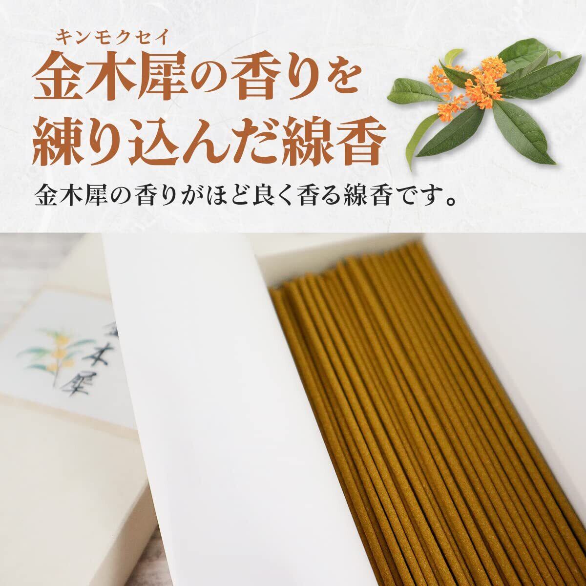 金木犀の香りの5寸線香です。 金木犀のフローラルな香りをお楽しみいただけます。 金木犀の香りは日本でなじみ深く、古来より愛されてきた香りです。