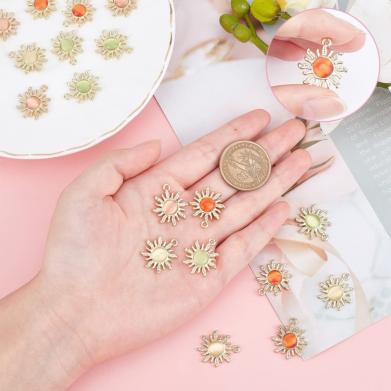 SUNNYCLUE 20個4色 チャーム 太陽 ペンダント キャッツアイ ビーズ 石 パワー エネルギー ストーン パーツ 日 ピアス ソーラー イヤリング お日様 輝き ネックレス 透かし キーホルダー ブレスレット メタルパーツ カラフル 金色 ゴールド色 合金ペンダント チャームパーツ アクセサリー 基礎パーツ ジュエリー作り レディース デコキット クラフト手芸 手作りハンドメイド キット DIY飾り物