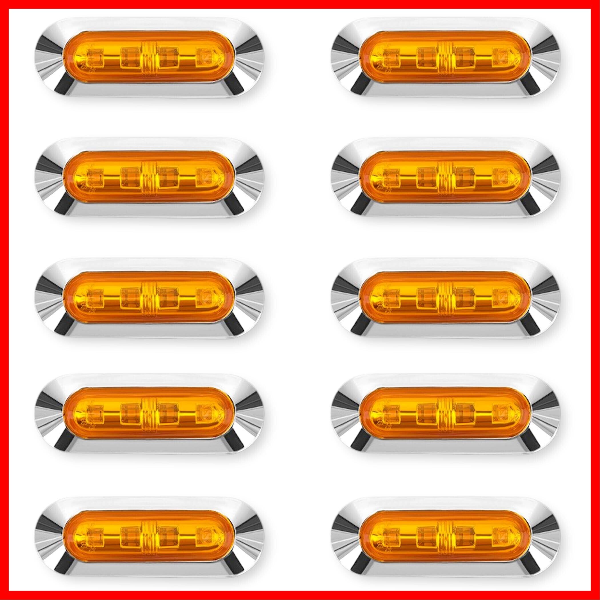 Lezalic LED 4連 カラーレンズ 10個セット 12V 24V 高輝度 小型 ランプ サイド マーカー 防水型 トラック メッキ カスタム (アンバー)