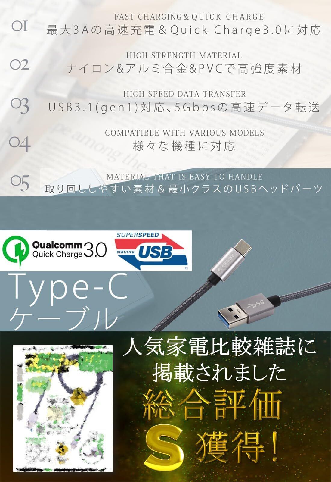 【国内ブランド】 STAB ILIST USB-Type-C 充電ケーブル 2m 急速充電 USB3.0 3.1 変換 タイプc typec USB-C usbc USB-A android Xperia Galaxy iPad Pro MacBook switch 等対応 (2m)