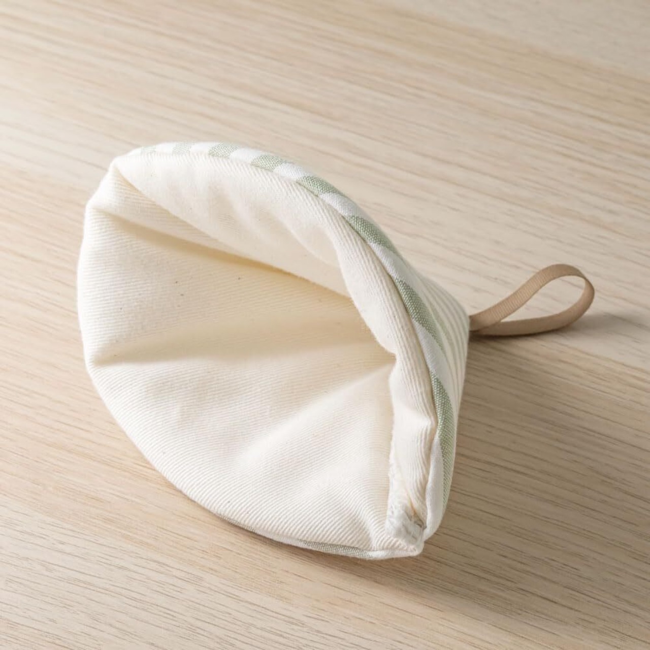 アンドエヌイー(&NE) 三角鍋つかみ ナチュラルストライプグリーン 1個 直径12.5cm×高さ9cm 日本製 ストウブ 取っ手 鍋蓋 布製 ループ付き 小さい 洗える NHK-225-NSGR | hananoki