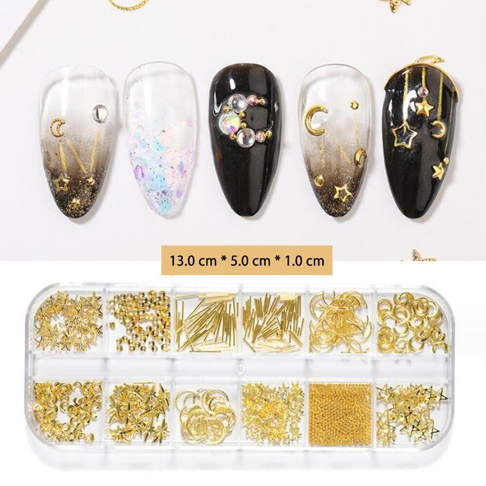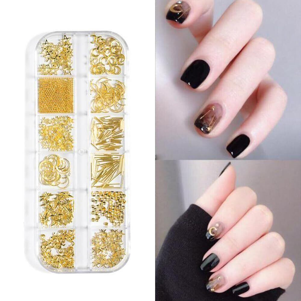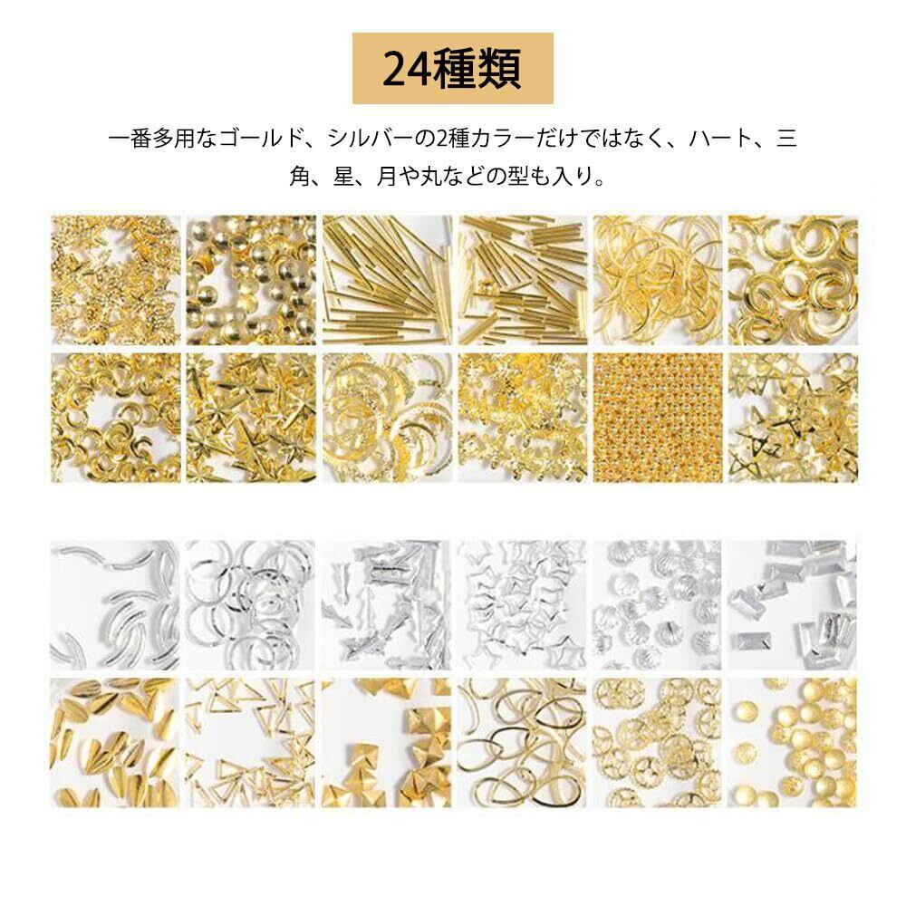 ネイルパーツ 3本セット 金属パーツ ネイルデザイン アクセサリー デコパーツ 四角 三角 丸 パール フレークパーツ ネイルアート ネイルスタッズ ネイル デコレーション ゴールドネイルパーツセット (B)