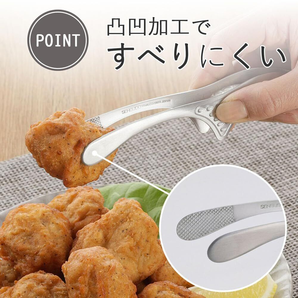 下村企販 先端が浮いて汚れない スマート卓上トング 【日本製】 細かい食材も掴みやすい アウトドア 食洗器対応 焼肉 揚げ物 全長17cm 菜箸トング ミニ ステンレス 仙武堂 燕三条 43401