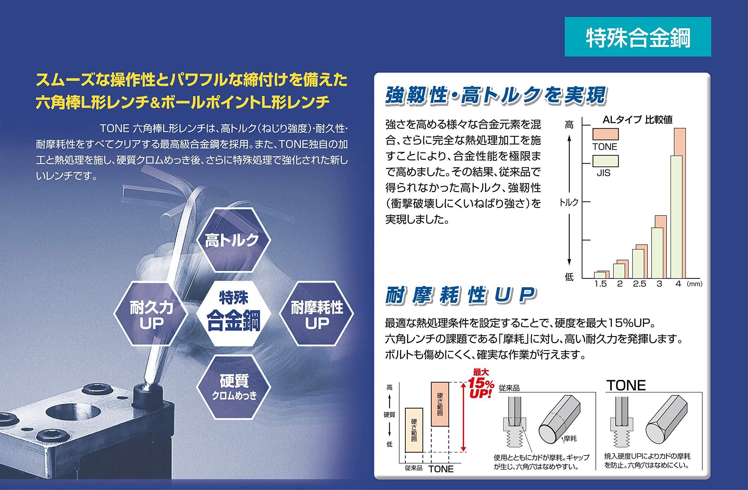 トネ(TONE) ロングボールポイントL形レンチセット BPLT90 内容9点