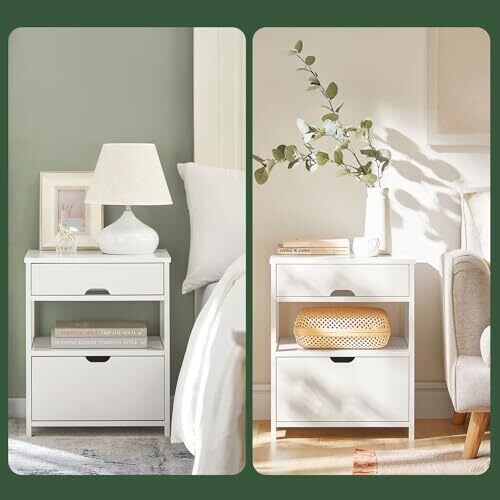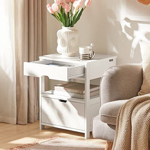 SoBuy ベッドサイドテーブル ナイトテーブル ベッド横 テーブル 幅45×奥行き37.5×高さ55cm おしゃれ 北欧 電話台 サイドチェスト ベッドテーブル ベッドサイド 収納(FRG258-W/ホワイト)