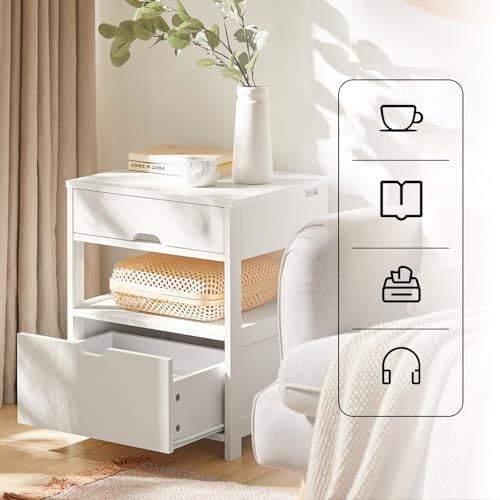 SoBuy ベッドサイドテーブル ナイトテーブル ベッド横 テーブル 幅45×奥行き37.5×高さ55cm おしゃれ 北欧 電話台 サイドチェスト ベッドテーブル ベッドサイド 収納(FRG258-W/ホワイト) | hananoki