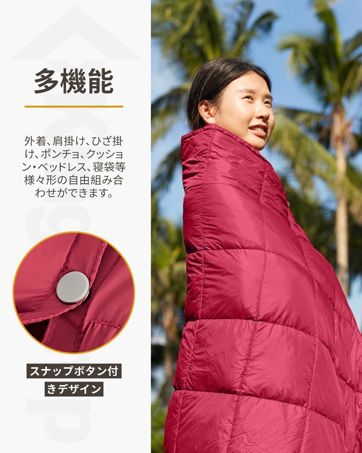 【多目的ソフトブランケット】: キャンプ場からカウチまで毛布やショールとしてお使いください。 ショールのようにボタンアップすれば、暖かいまま、手の自由を保ちます。 また、寝袋としてもお使いいただけます。 コンシールファスナー付きのキャリーバッグを枕や腰のサポートとして便利に使用することも可能。
