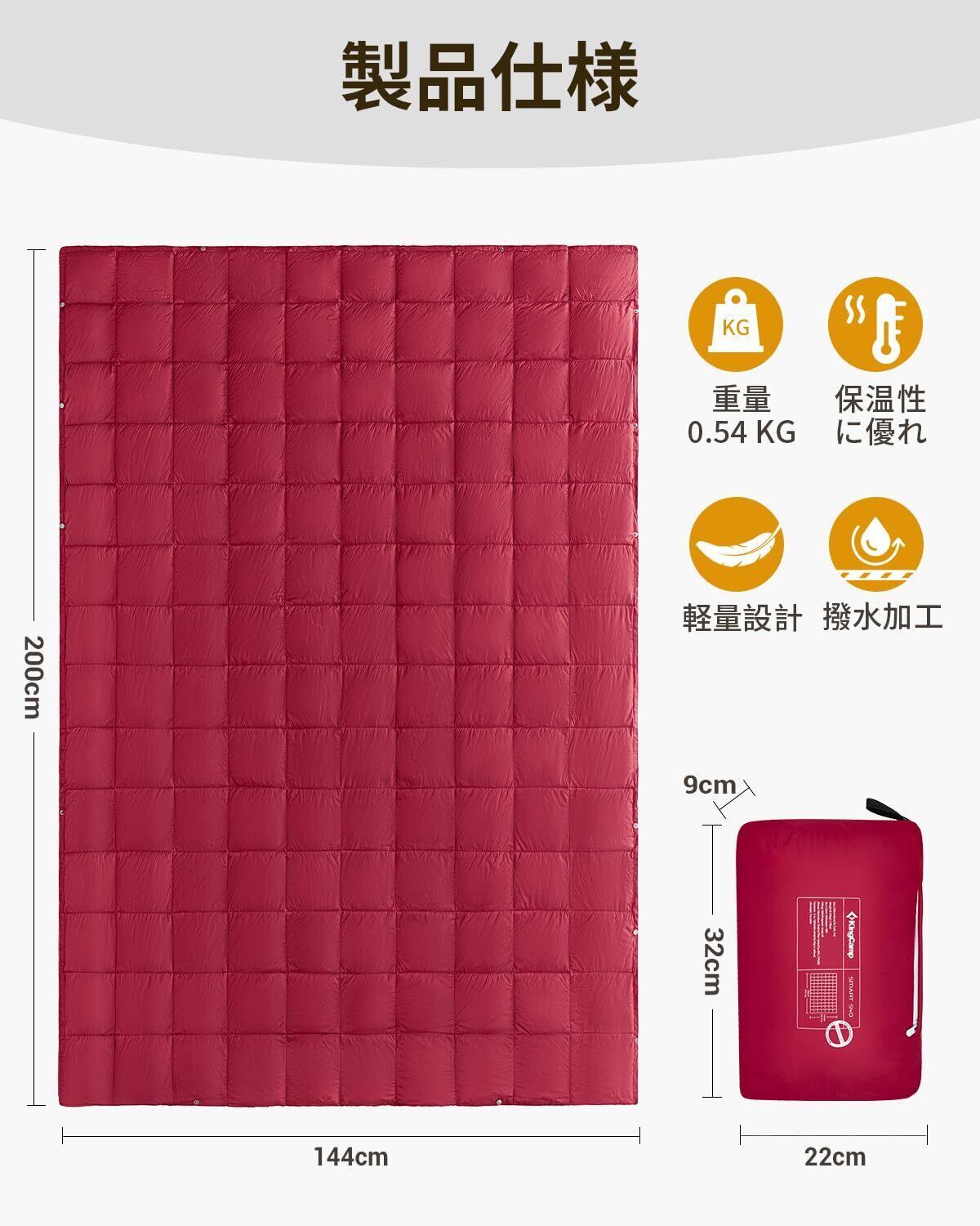 KingCamp ブランケット 防災 超軽量 厚手 保温 防水 大判 200x144cm 冬用 膝掛け 連結可能 コンパクト 携帯便利 毛布 アウトドア キャンプ 車中泊 2枚合わせ 収納ポーチ付き 丸洗い