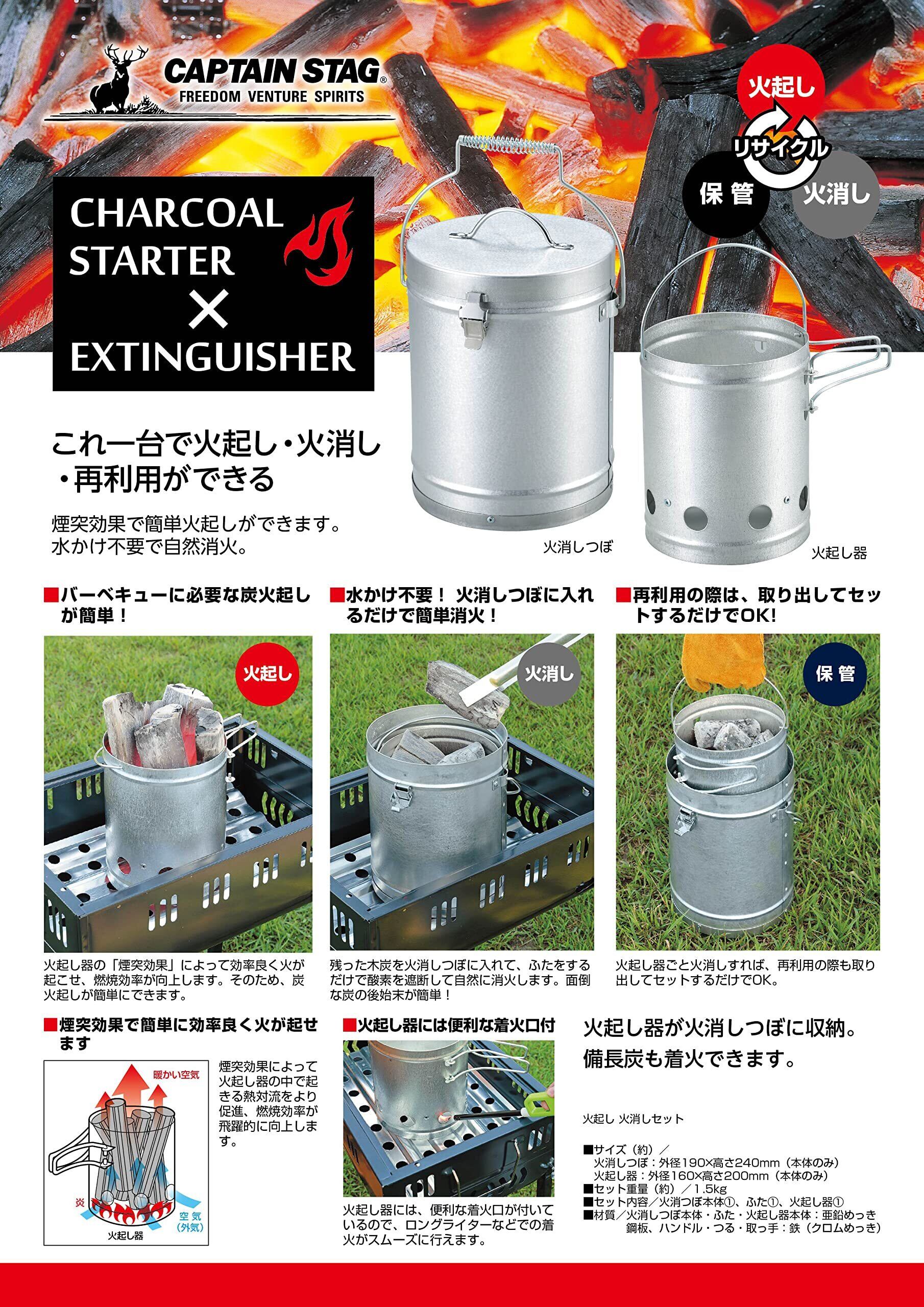 【 限定】 キャプテンスタッグ(CAPTAIN STAG) 火起こし 火消し 大型 火消し壺 火起こし器 セット UY-7023 シルバー 外径190×高さ240mm