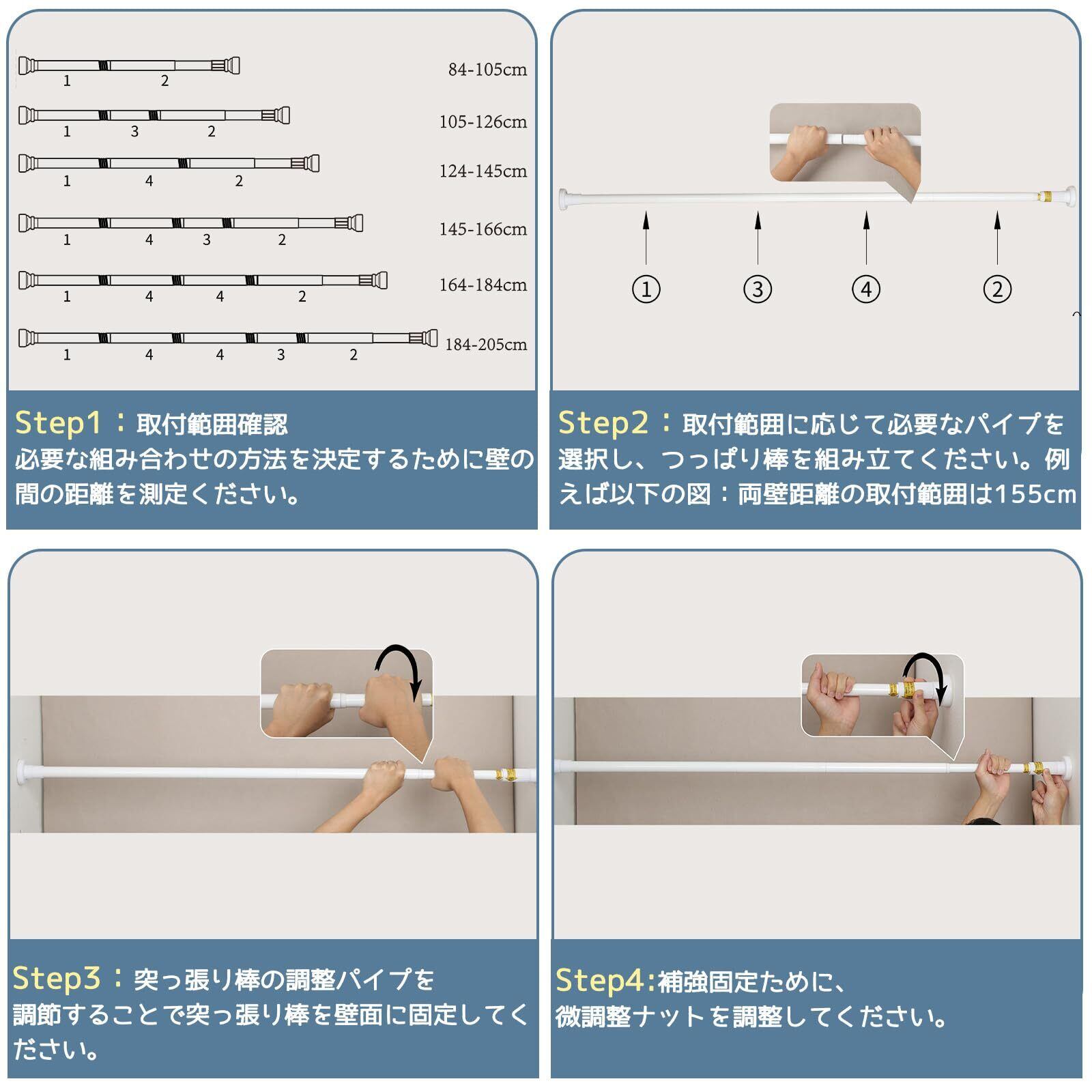 Goowin 突っ張り棒 84~126cm ねじり止め式つっぱり棒 強力 おしゃれ 伸縮棒 シャワーカーテン 衣類 コート掛け 棚 収納 ベランダ リビング 洗面所 トイレ お風呂 浴室 玄関 整理 クローゼット収納 カーテンロッド 物干し 間仕切りカーテン ホワイト