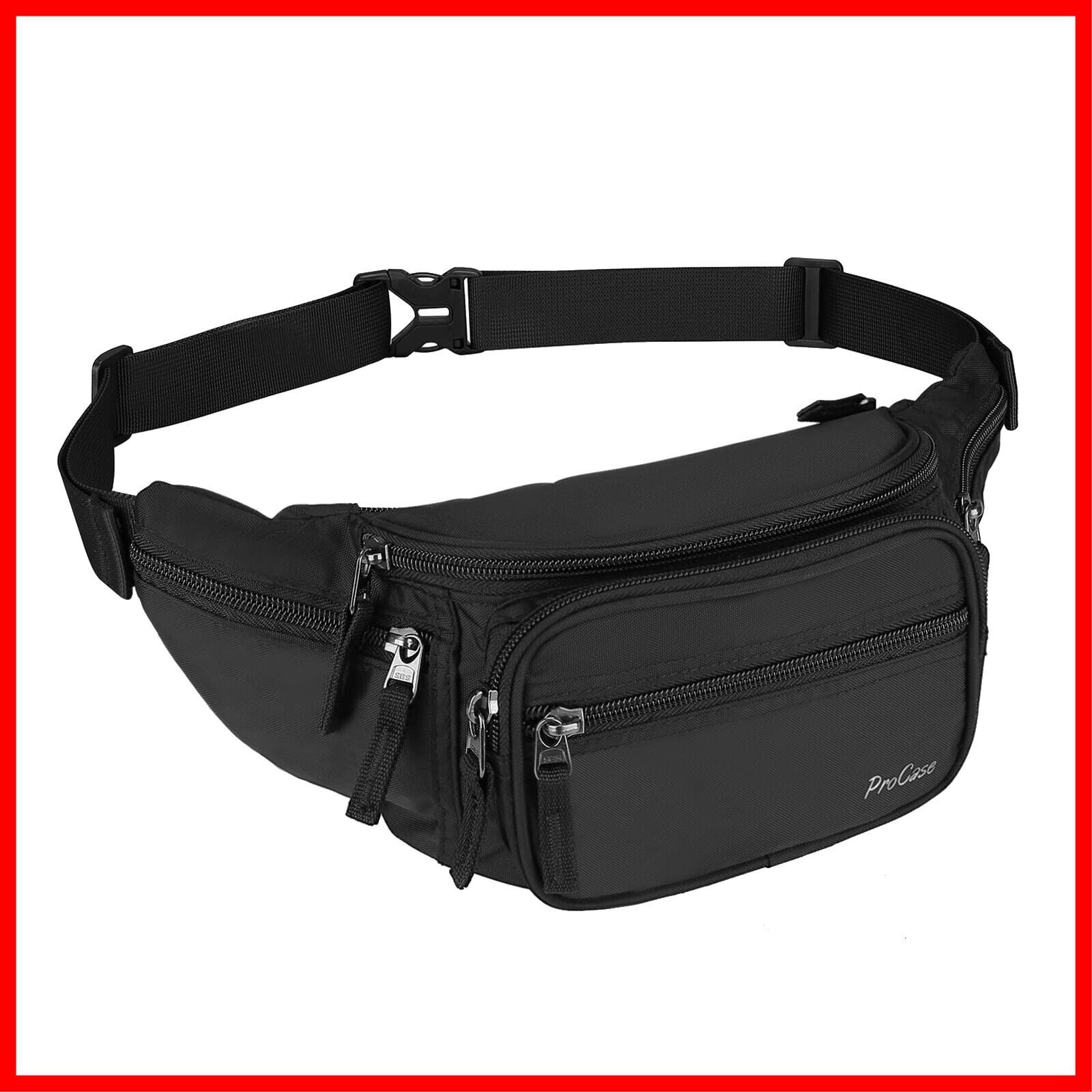 ProCase ウエストポーチ ウエストバッグ 調節可なウエストバンド 6個ポケット メンズ レディース 仕事用 バイク用 耐水性 大容量 ipone/Airpodsなど収納可能 財布 適用場所:旅行 ハイキング ランニング アウトドア- ブラック
