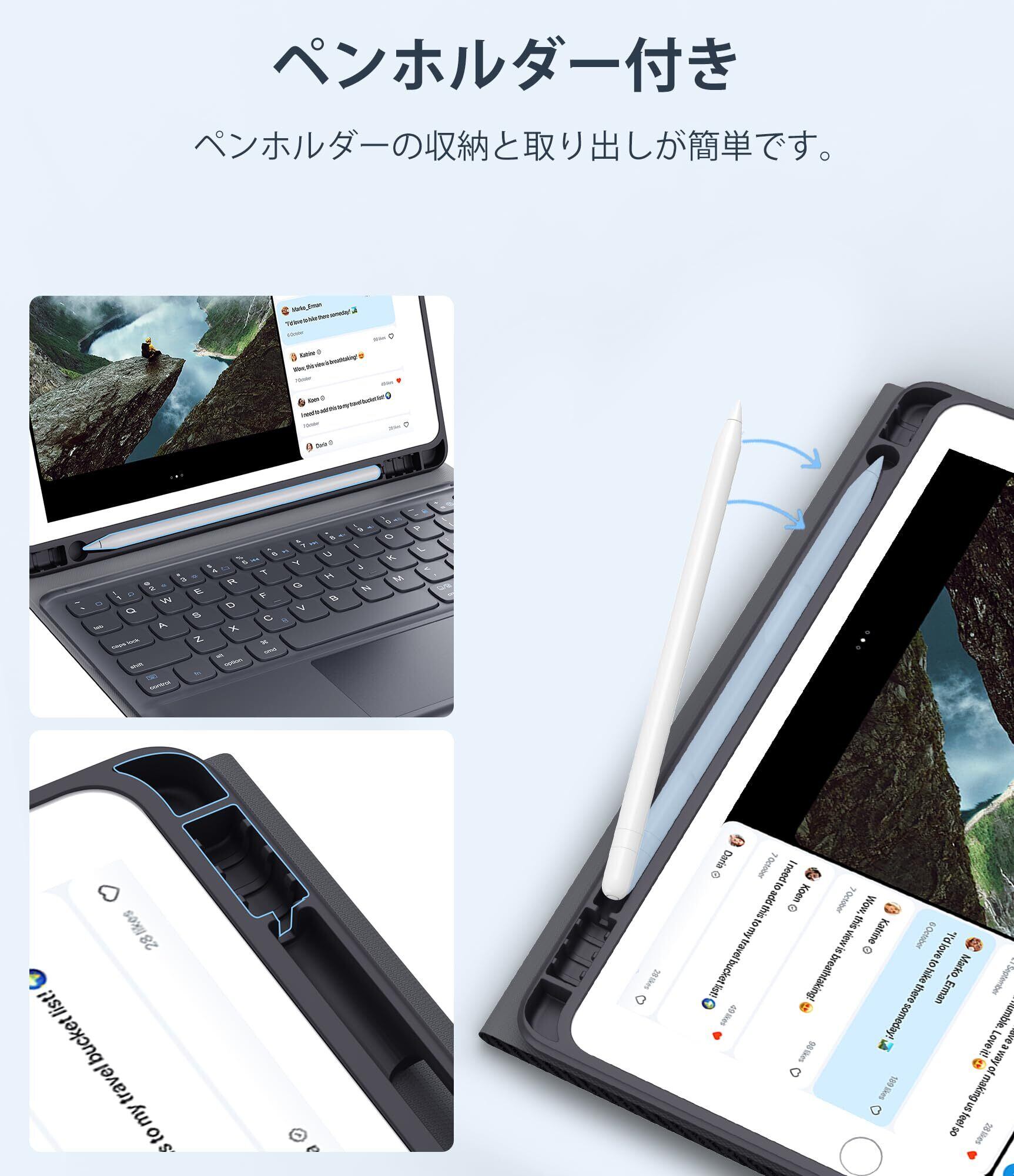 iPad 9世代 キーボード iPad 8世代 キーボード ケース タッチパッド付き ipad 10.2 キーボード ケースiPad7世代キーボード[2021/2020/2019モデル] BTキーボードカバー 脱着式 多角度調整 傷つけ防止 耐久性 [ペンシルホルダー付き] 最新型スマート ケースキーボード 丸いキー可愛いキー マグネット付きワイヤレスアイパッド10.2インチキーボード ブラック | hananoki