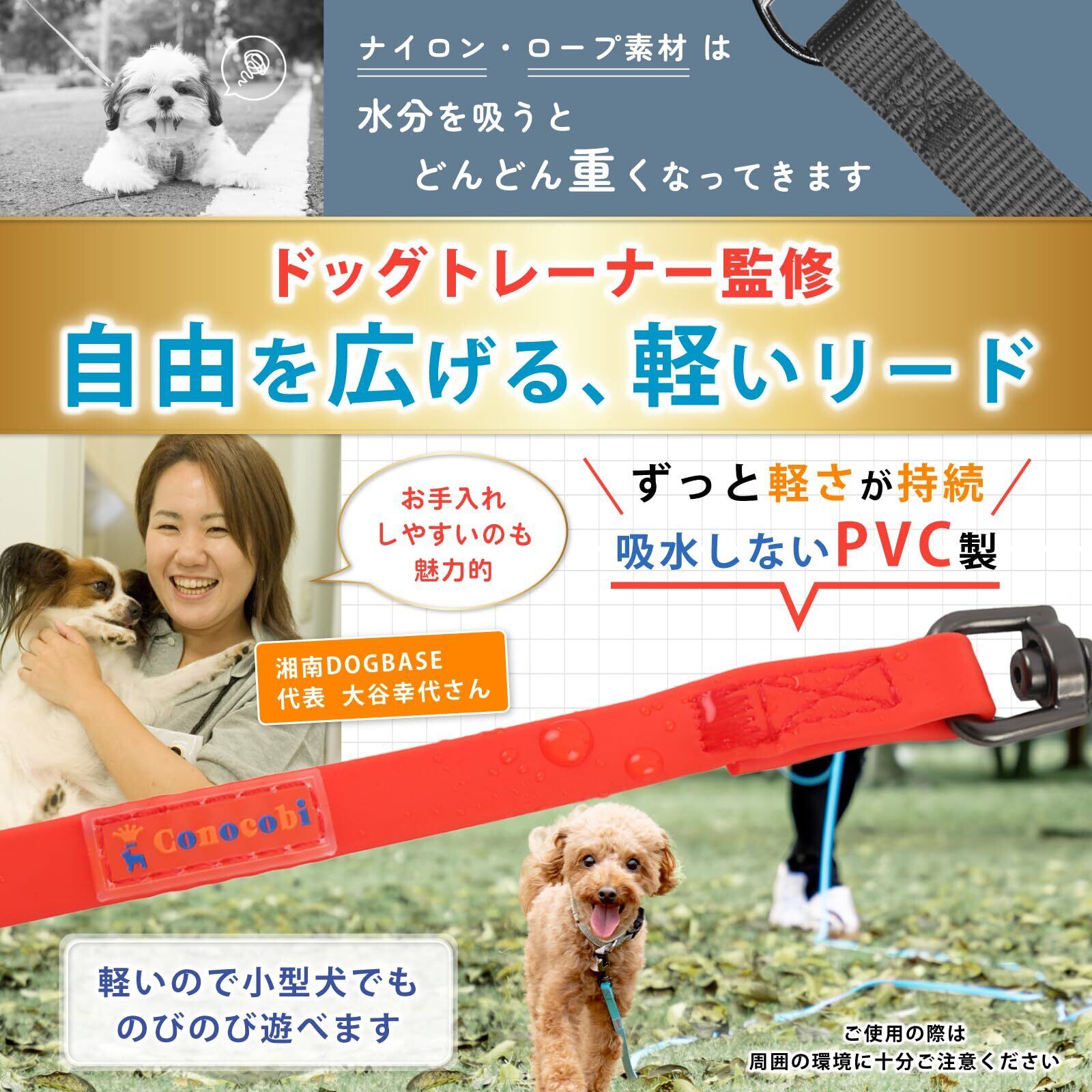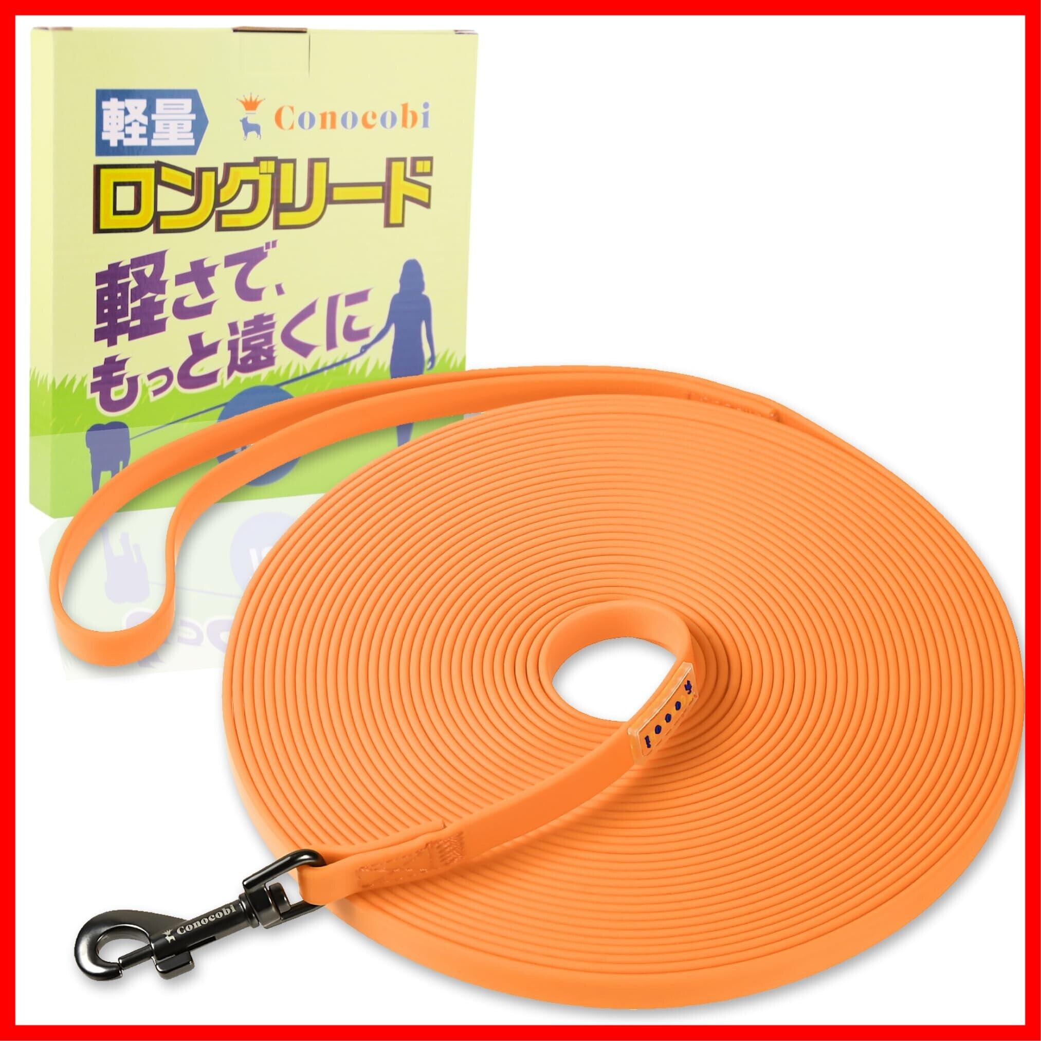 Conocobi 軽量ロングリード 15m橙 トレーナー監修の長いリード 小型犬・中型犬向け 耐久性 耐水性