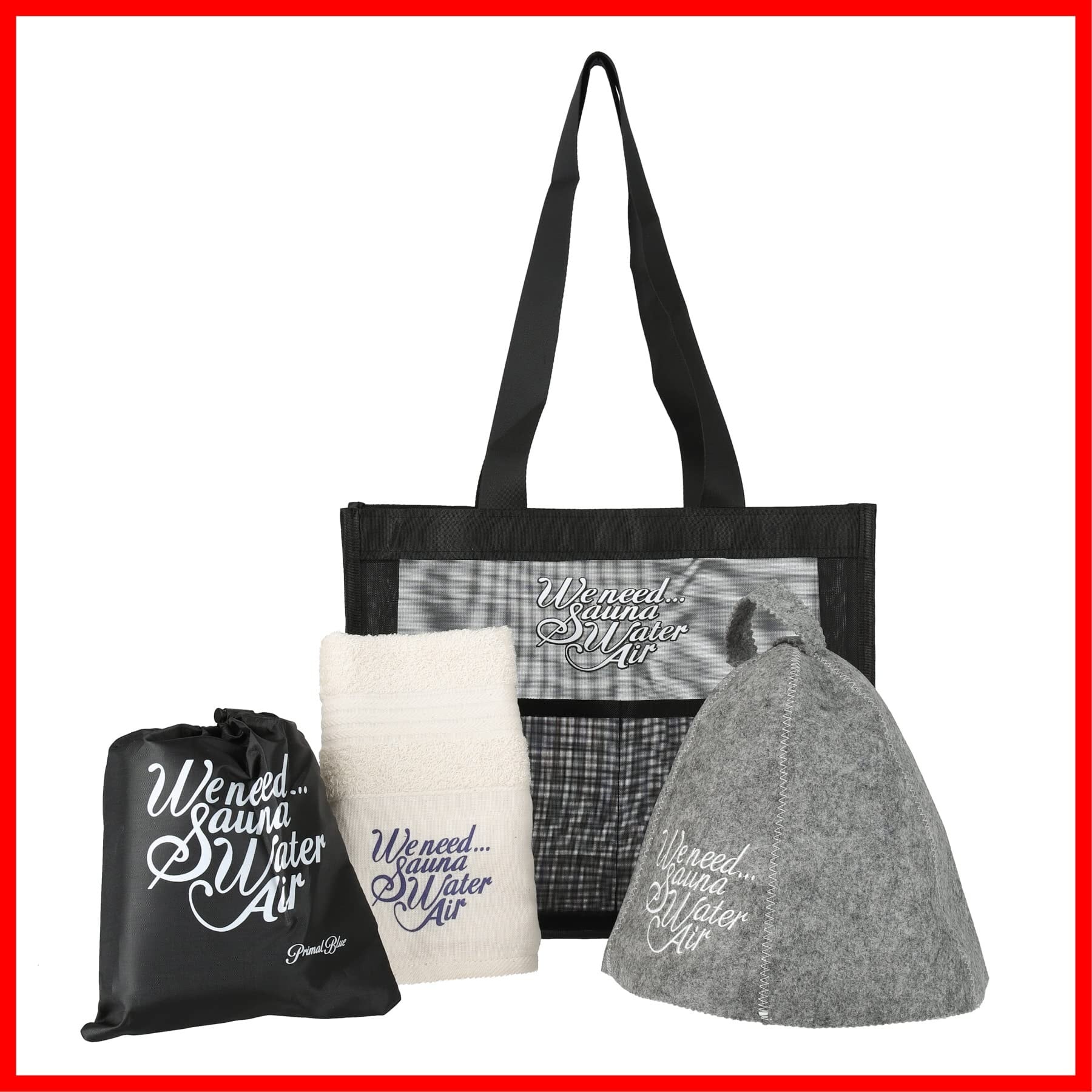 【セット内容】PrimalBlueサウナハット×1、PrimalBlueサウナマット×1,PrimalBlue泉州エコタオル×1、PrimalBlueメッシュトートバッグ×1