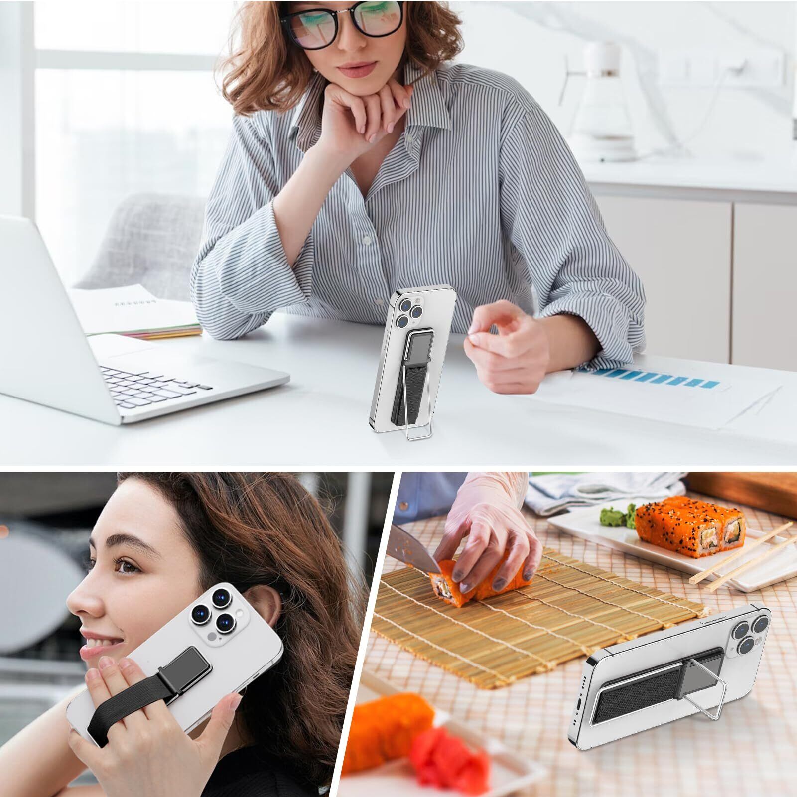 【3WAY使用】フィンガーストラップのおかけて、片手でスマホを操作できる。スマホスタンドとして、縦置き 横向きも全然問題ありません。金属が内蔵して、車載用ホルダーに固定することもできる。