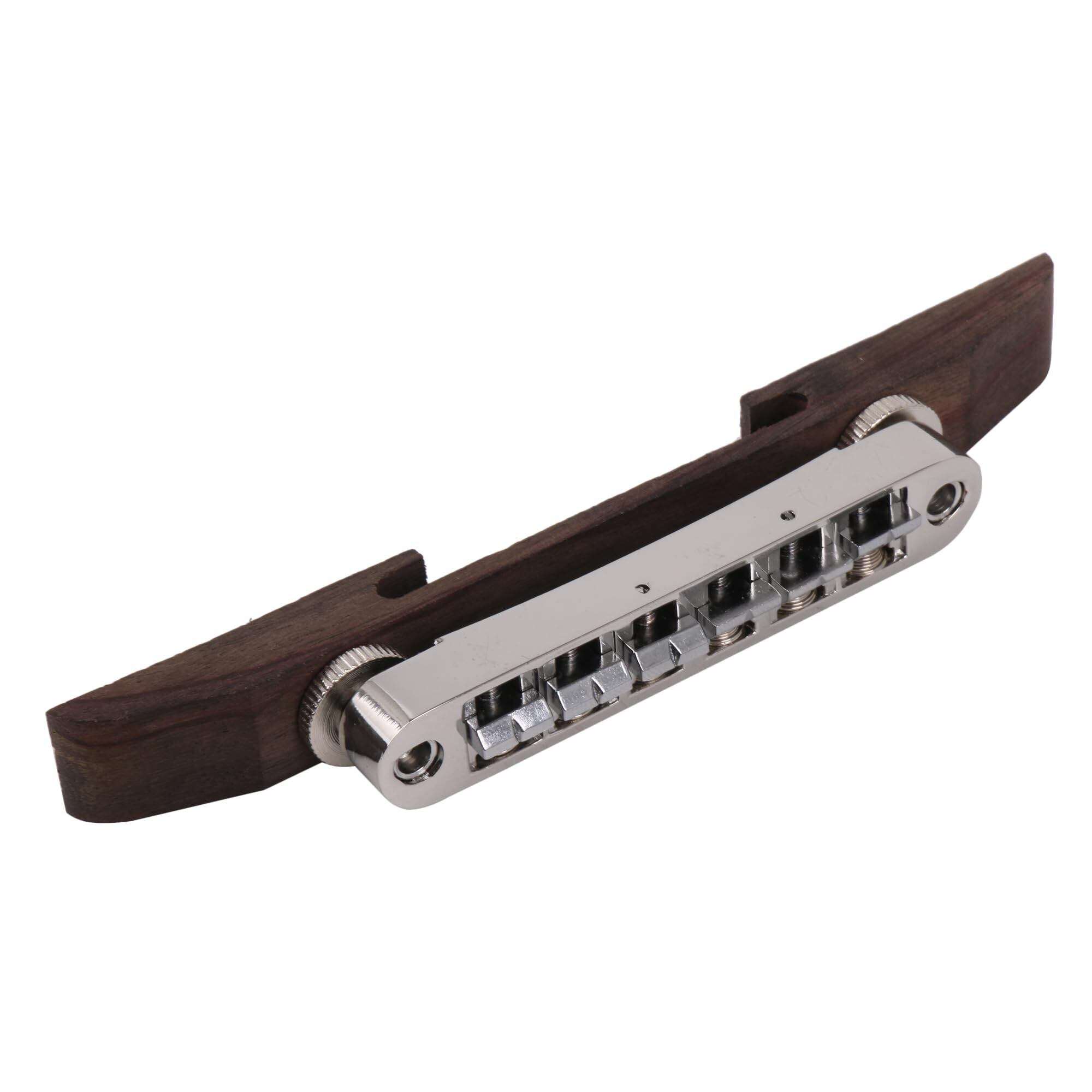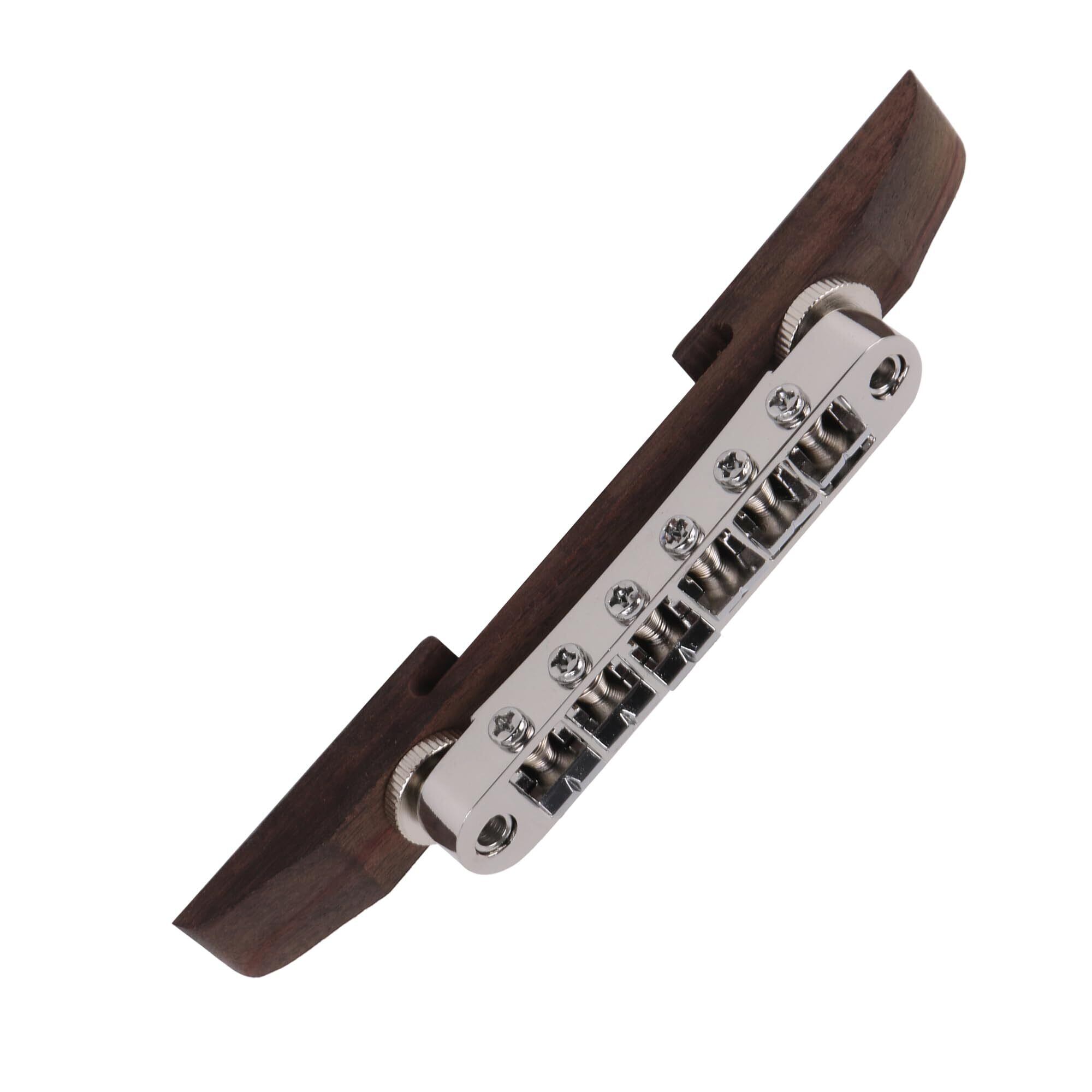 Yibuy 15ミリメートル幅さ クローム ローズウッド ジャズ・アコースティックギター・ブリッジ ローラーサドル付き 耐久性