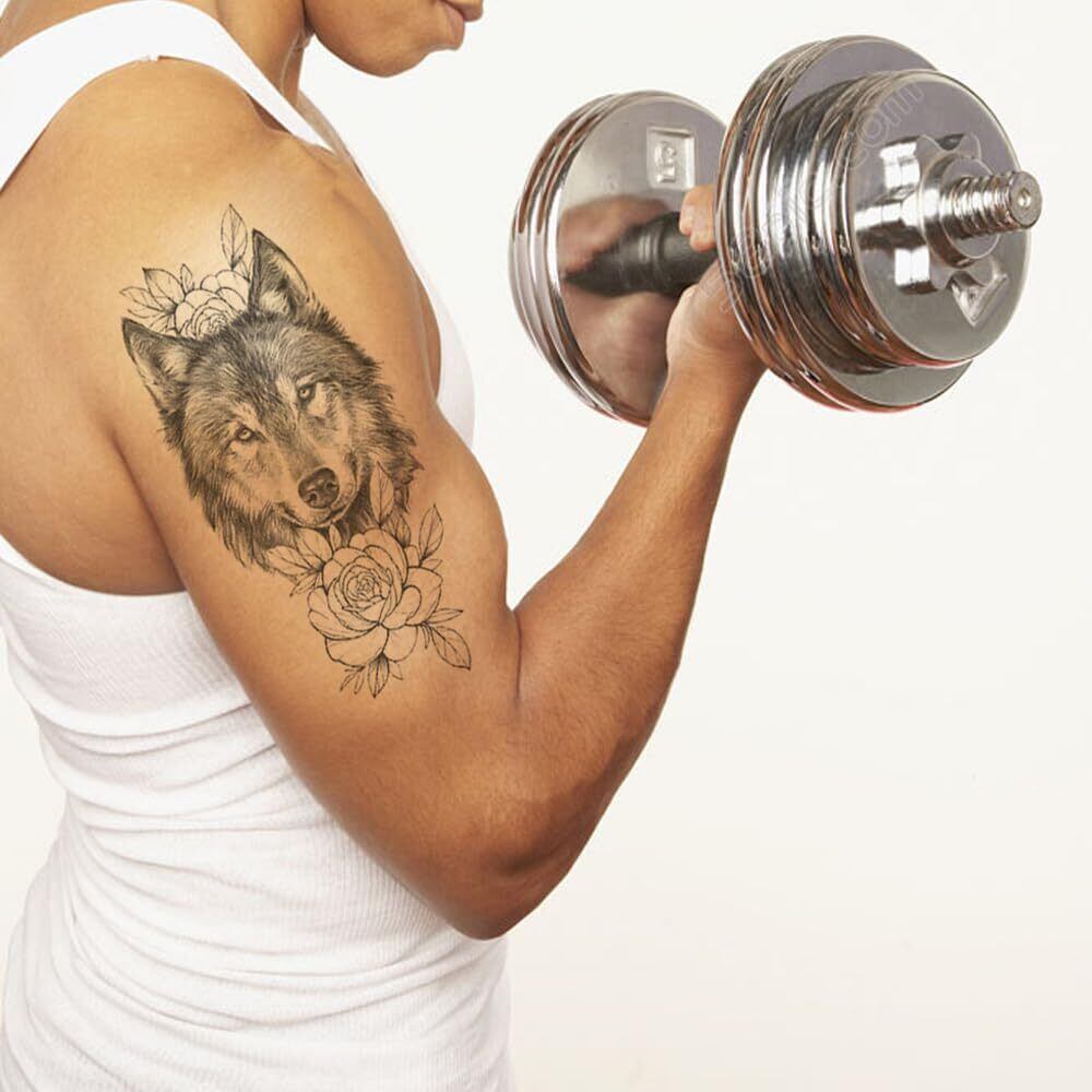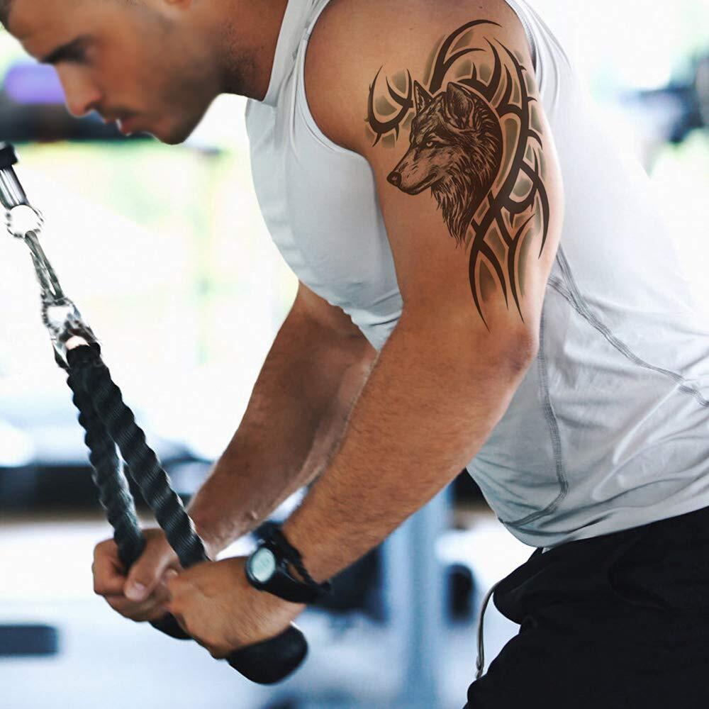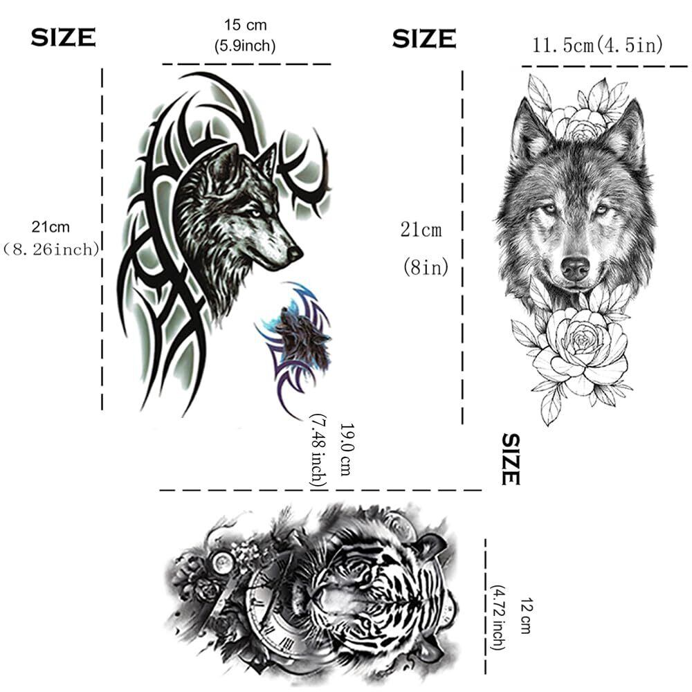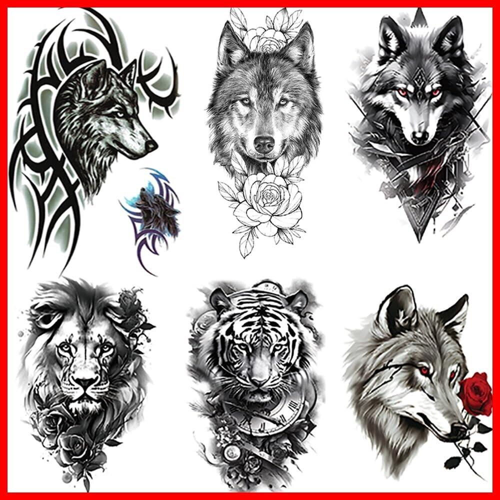 Yesallwas タトゥーシール トライバル 狼 (オオカミ)赤 薔薇 羽、トライバル ハート、トライバル トカゲ 、ライオン 大判 6枚セット タトゥーステッカー ボディーシール 刺青シール 防水 子供 レディース 腕、足、体、胸、肩、背中に簡単貼る TATOO | hananoki